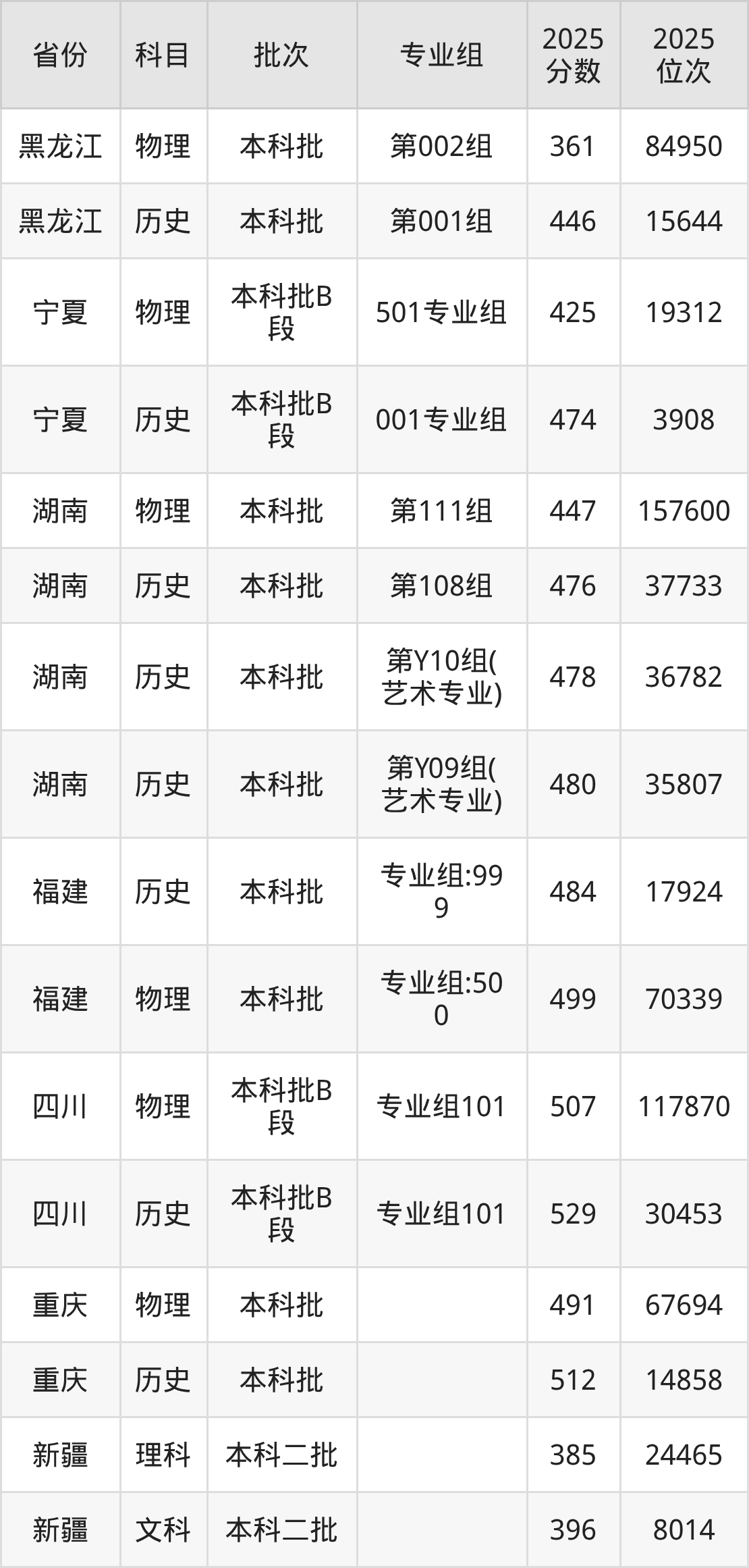 普通类本科物理类最低447分,本科历史类最低476分