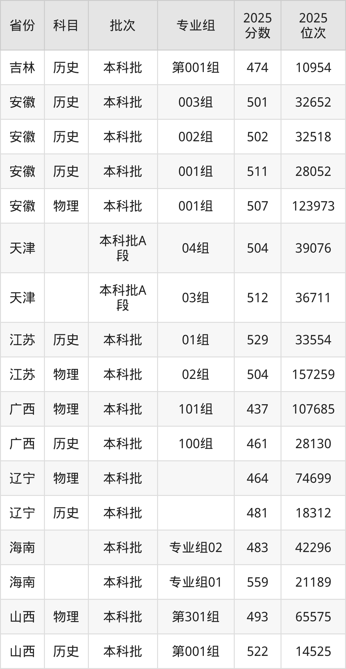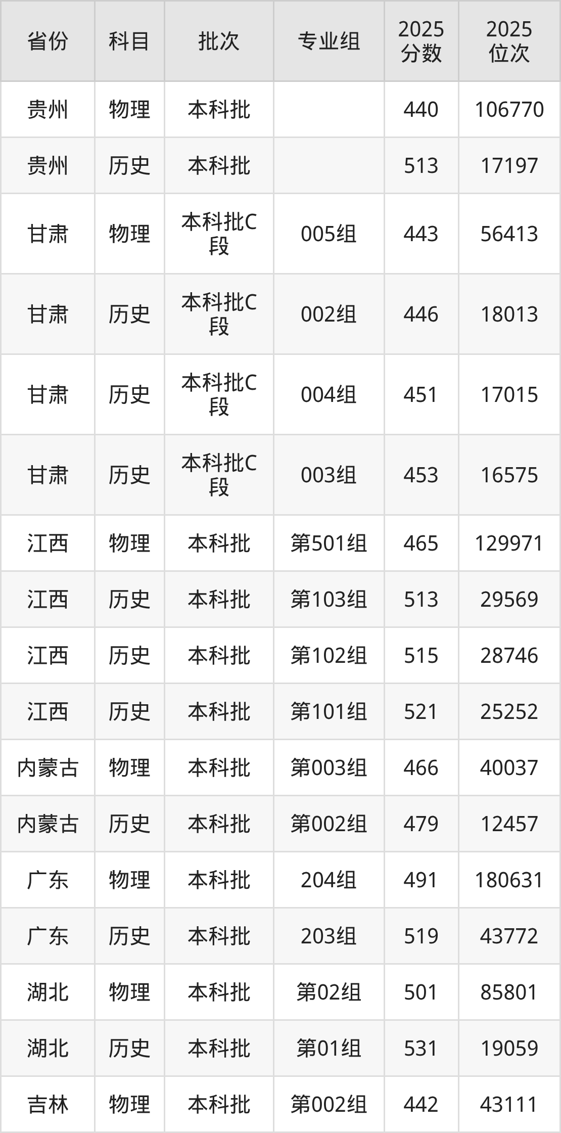 普通类本科物理类最低437分,本科历史类最低461分