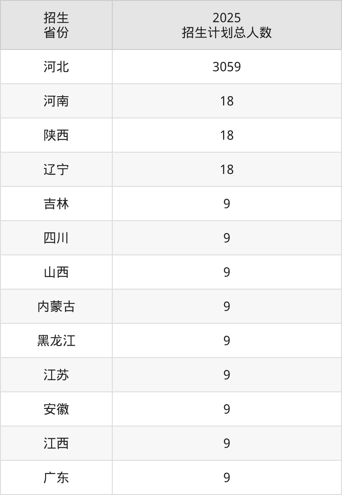 2025年秦皇岛工业职业技术学院面向全国13个省市开展专科招生;招生专业共17个,招生人数共3194人。2025年在河北省招生计划总人数是3059人,其中,秦皇岛工业职业技术学院在河北省招生人数最多的是数字化设计与制造技术。秦皇岛工业职业技术学院在各省具体招生人数情况如下表。