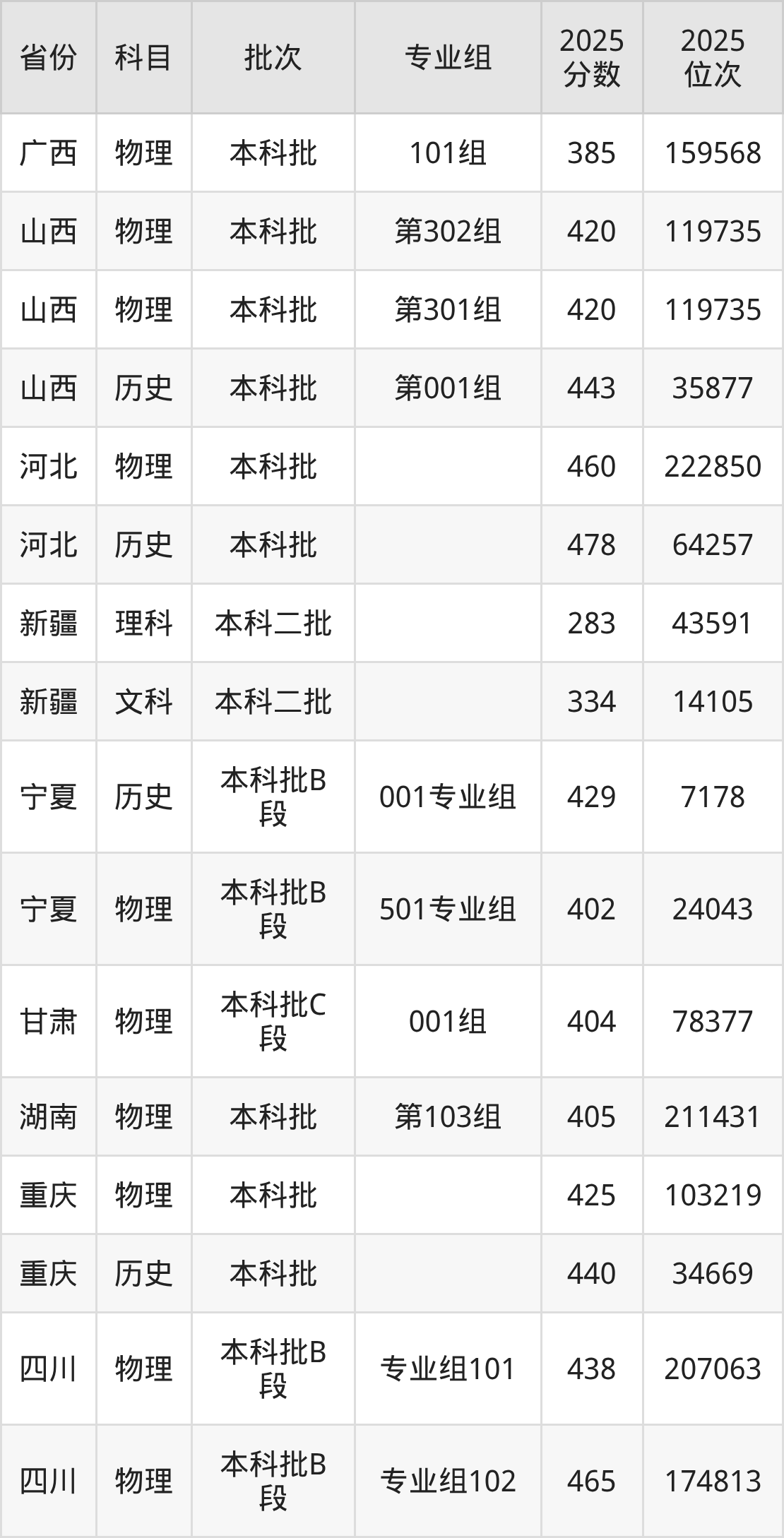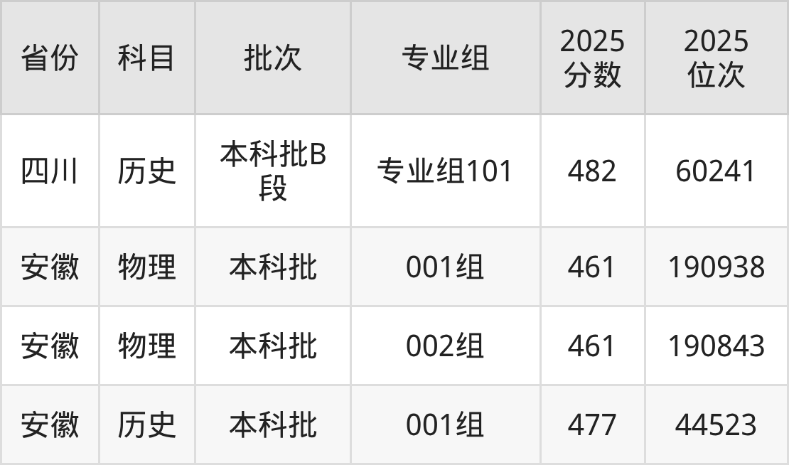 2025年在本科物理类进行招生,各专业组分数线详情如下: