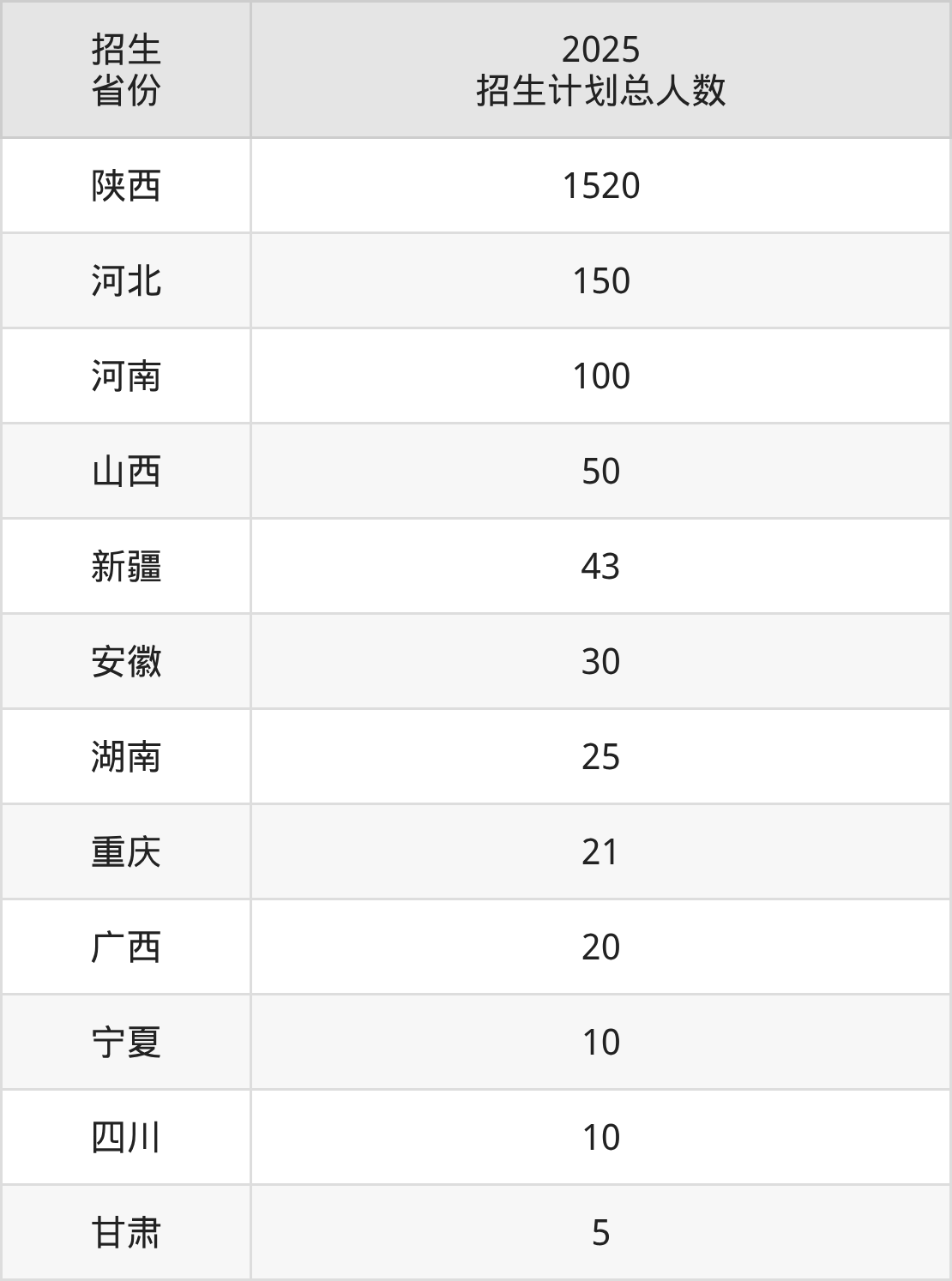 2025年陕西科技大学镐京学院面向全国12个省市开展本科招生;招生专业共26个,招生人数共1984人。2025年在陕西省招生计划总人数是1520人,其中,陕西科技大学镐京学院在陕西省招生人数最多的是电气工程及其自动化。陕西科技大学镐京学院在各省具体招生人数情况如下表。