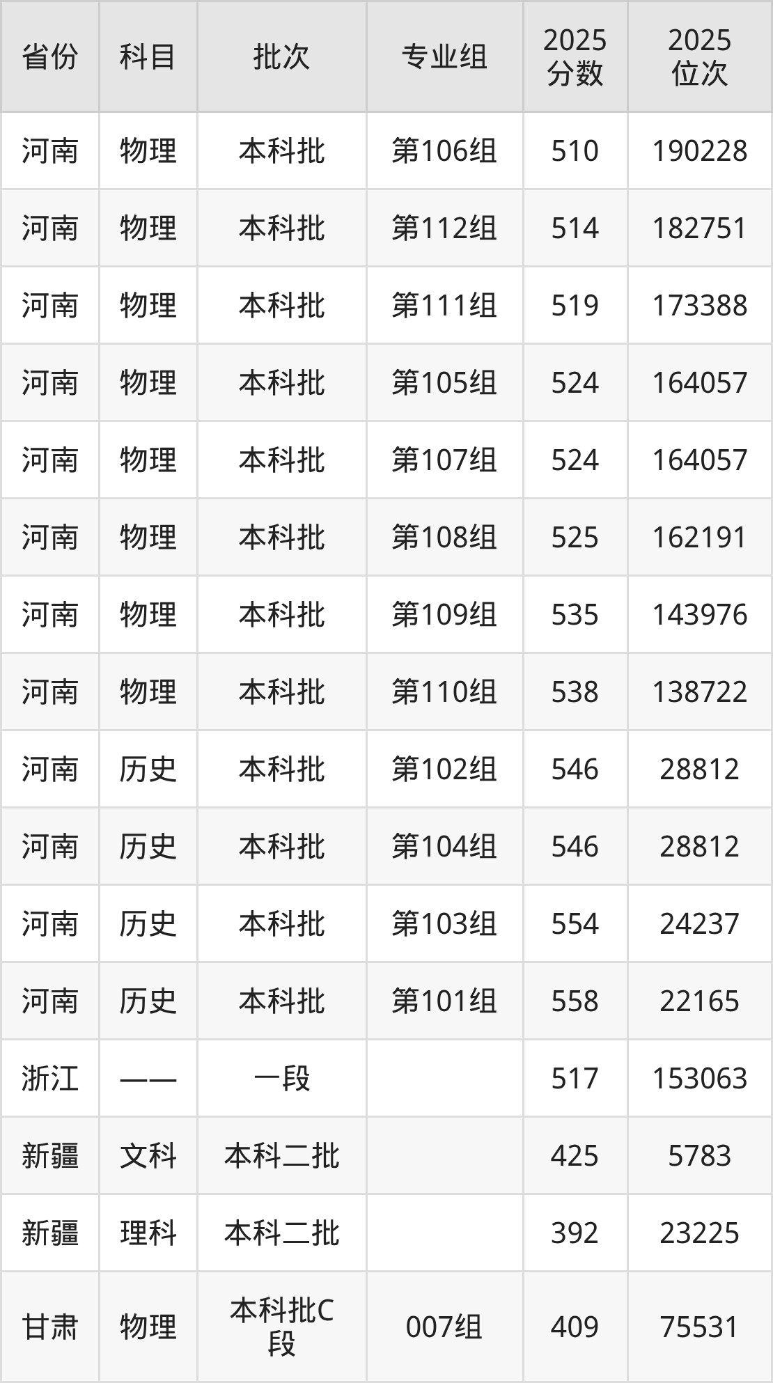 赣南师范大学专业组106:2025年投档录取最低分为513分,录取最低位次为109853名。