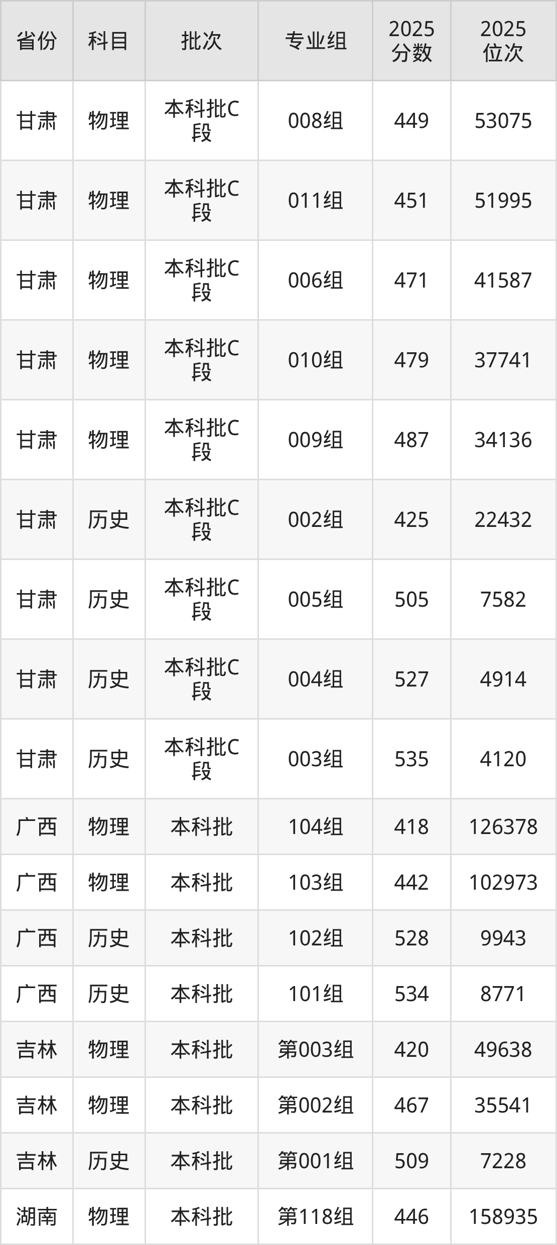 赣南师范大学第008组:2025年投档录取最低分为463分,录取最低位次为40959名。