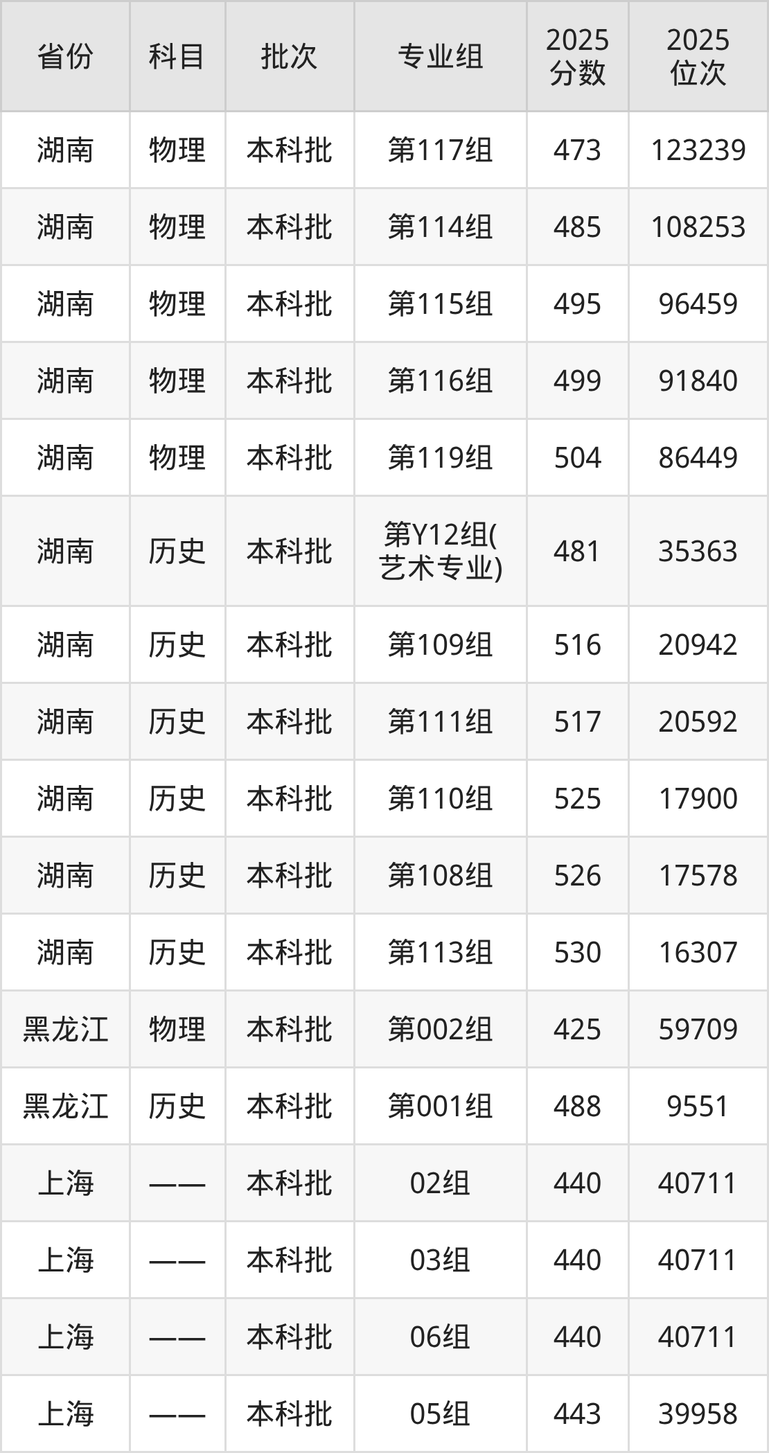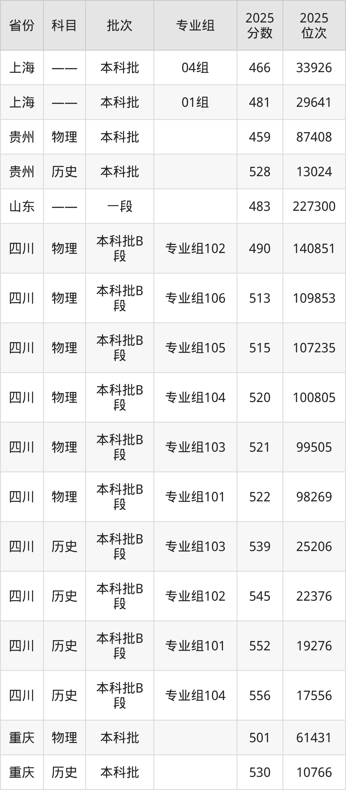 2025年投档录取最低分为501分,录取最低位次为61431名。