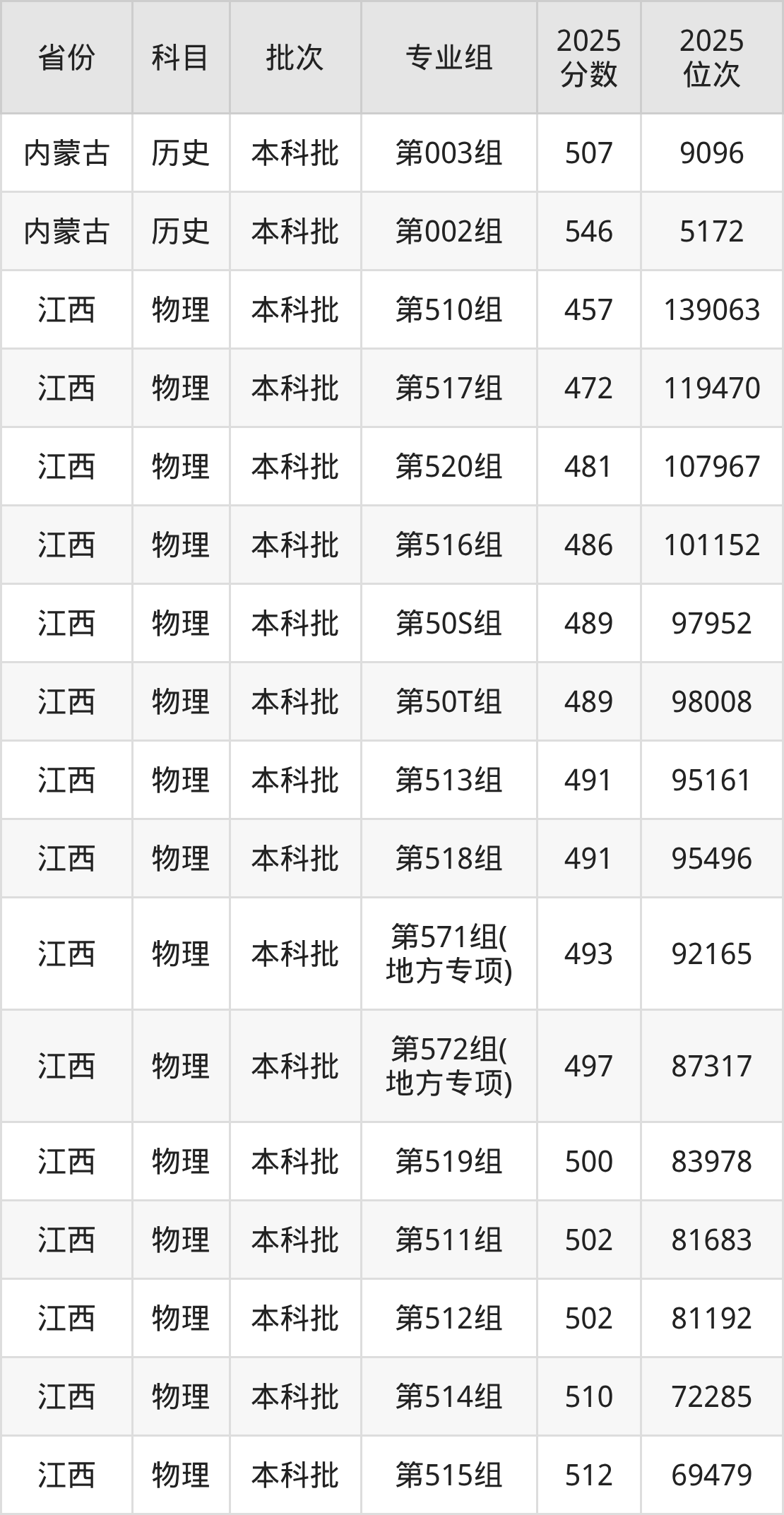 赣南师范大学第003组:2025年投档录取最低分为507分,录取最低位次为9096名。