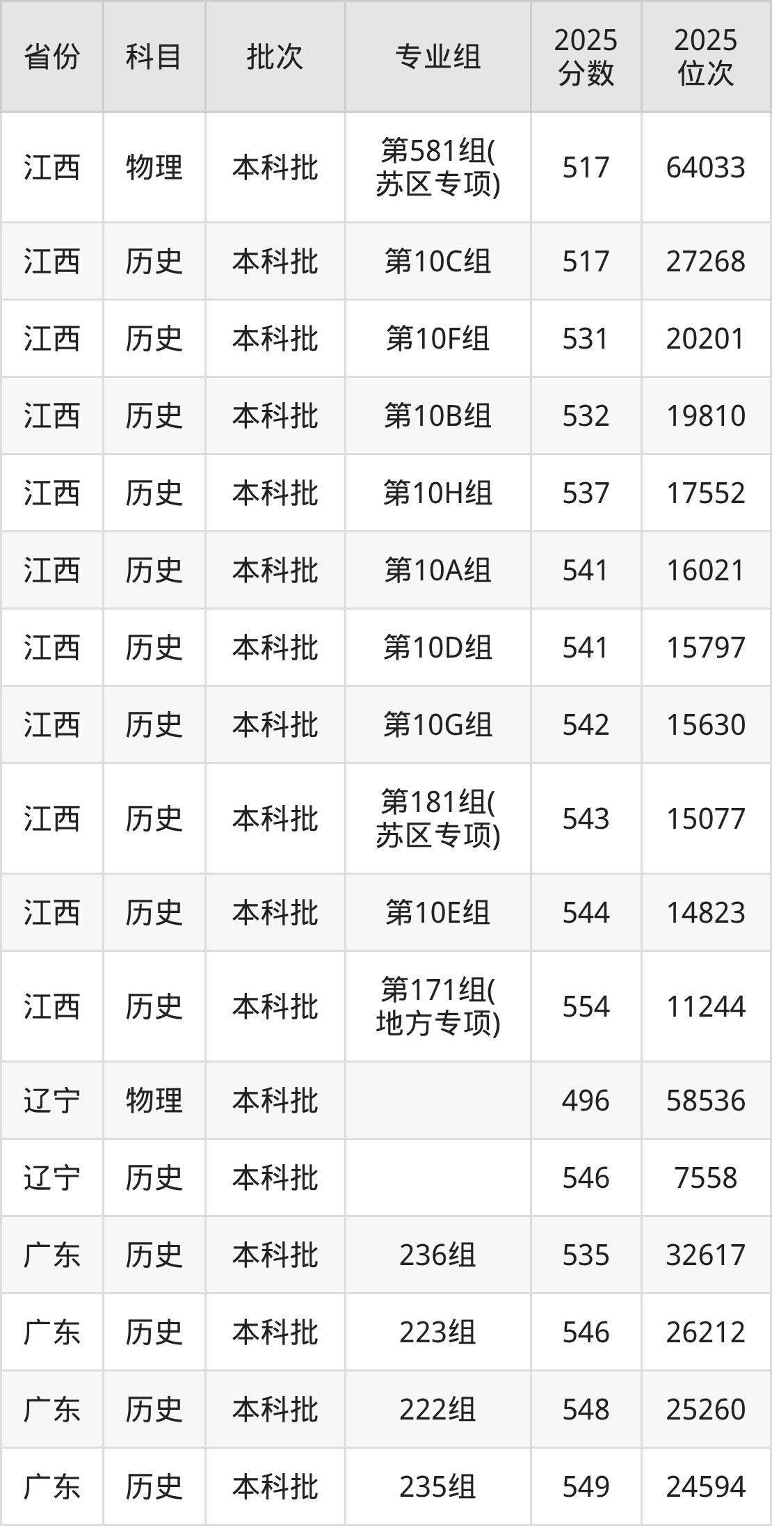 赣南师范大学第181组(苏区专项):2025年投档录取最低分为543分,录取最低位次为15077名。