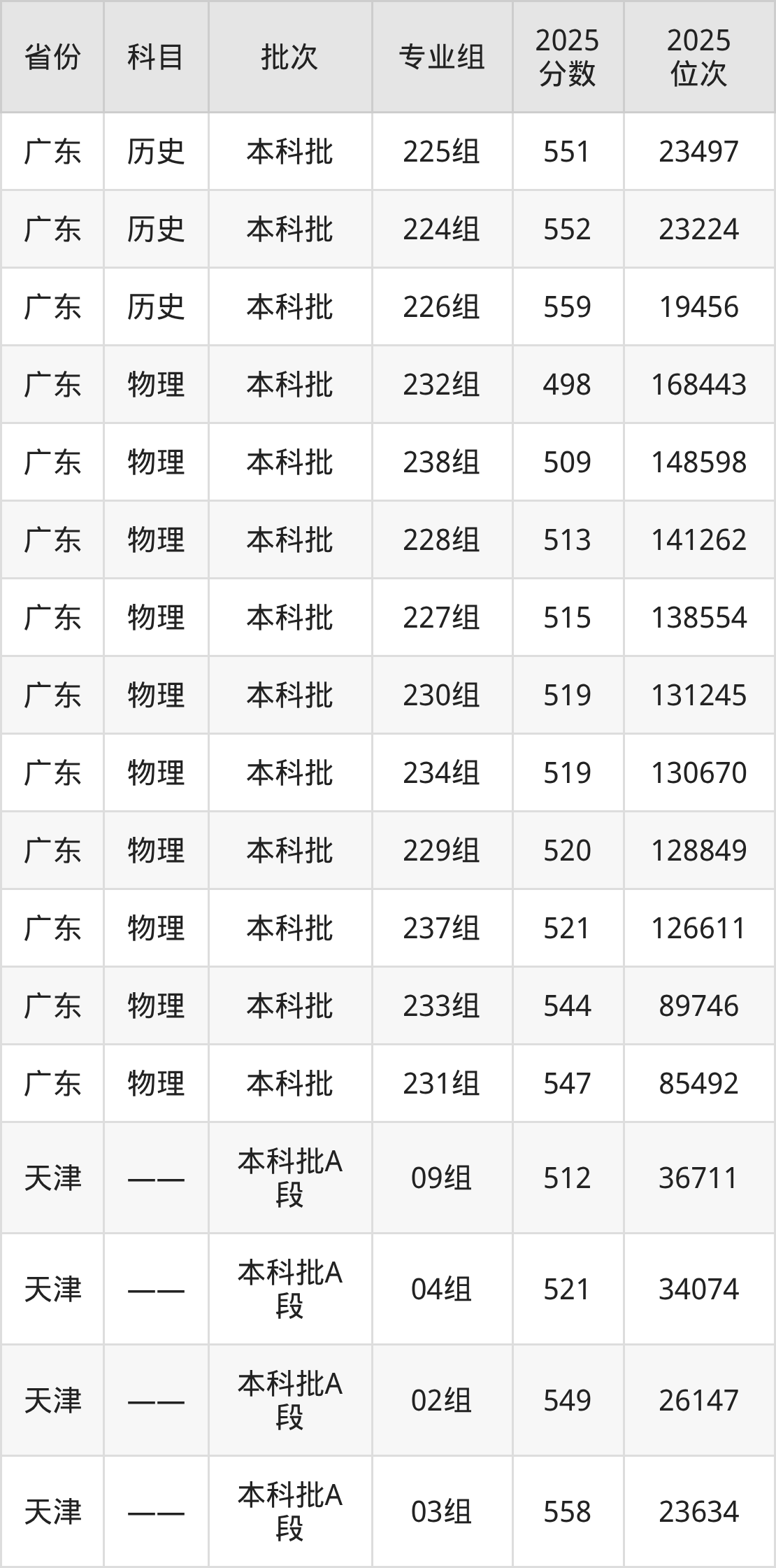 2025年投档录取最低分为546分,录取最低位次为7558名。