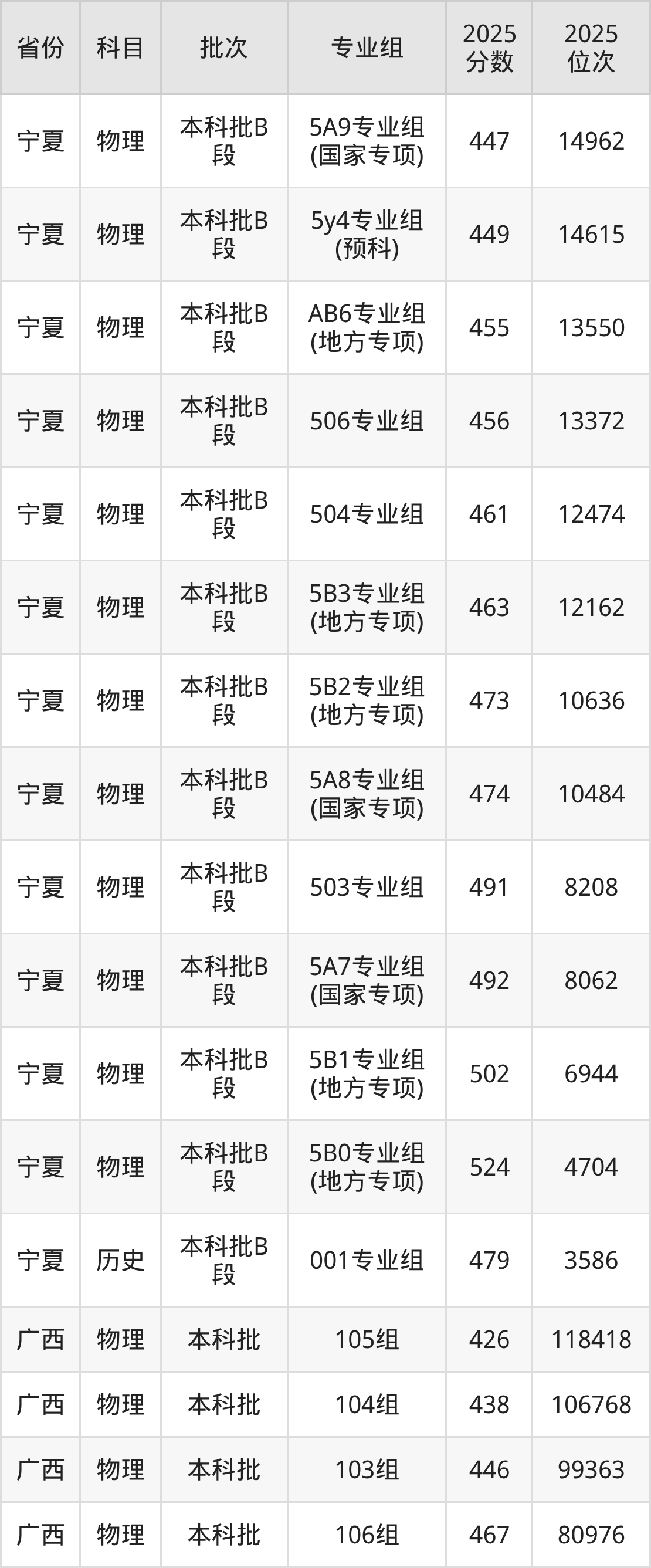 宁夏医科大学106组:2025年投档录取最低分为467分。