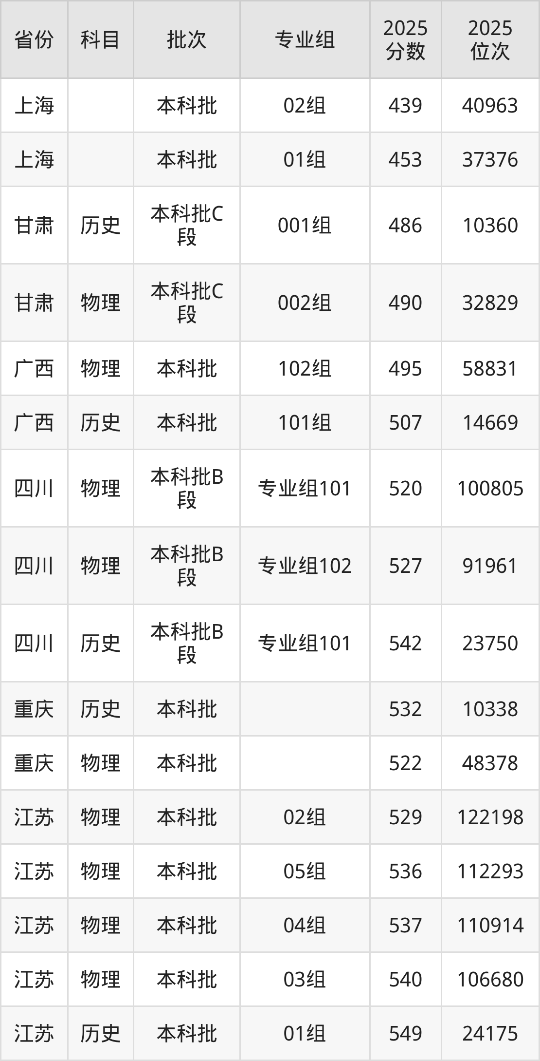 苏州城市学院05组:2025年投档录取最低分为536分,录取最低位次为112293名。