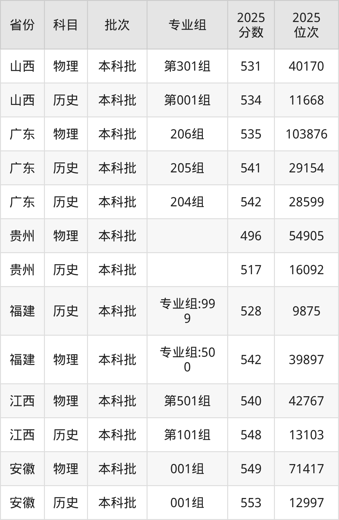 2025年投档录取最低分为517分,录取最低位次为16092名。
