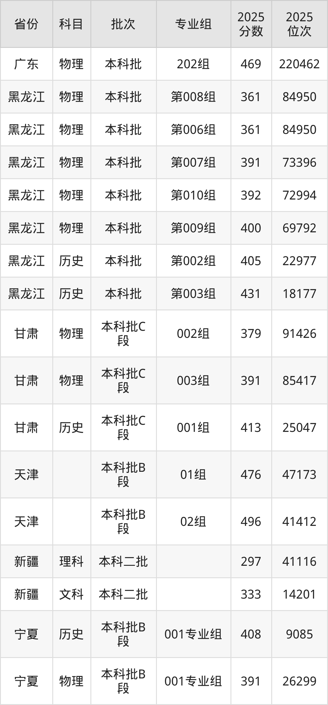2025年投档录取最低分为370分,录取最低位次为117041名。