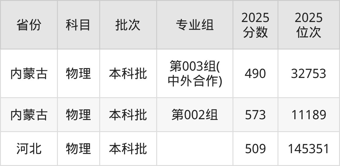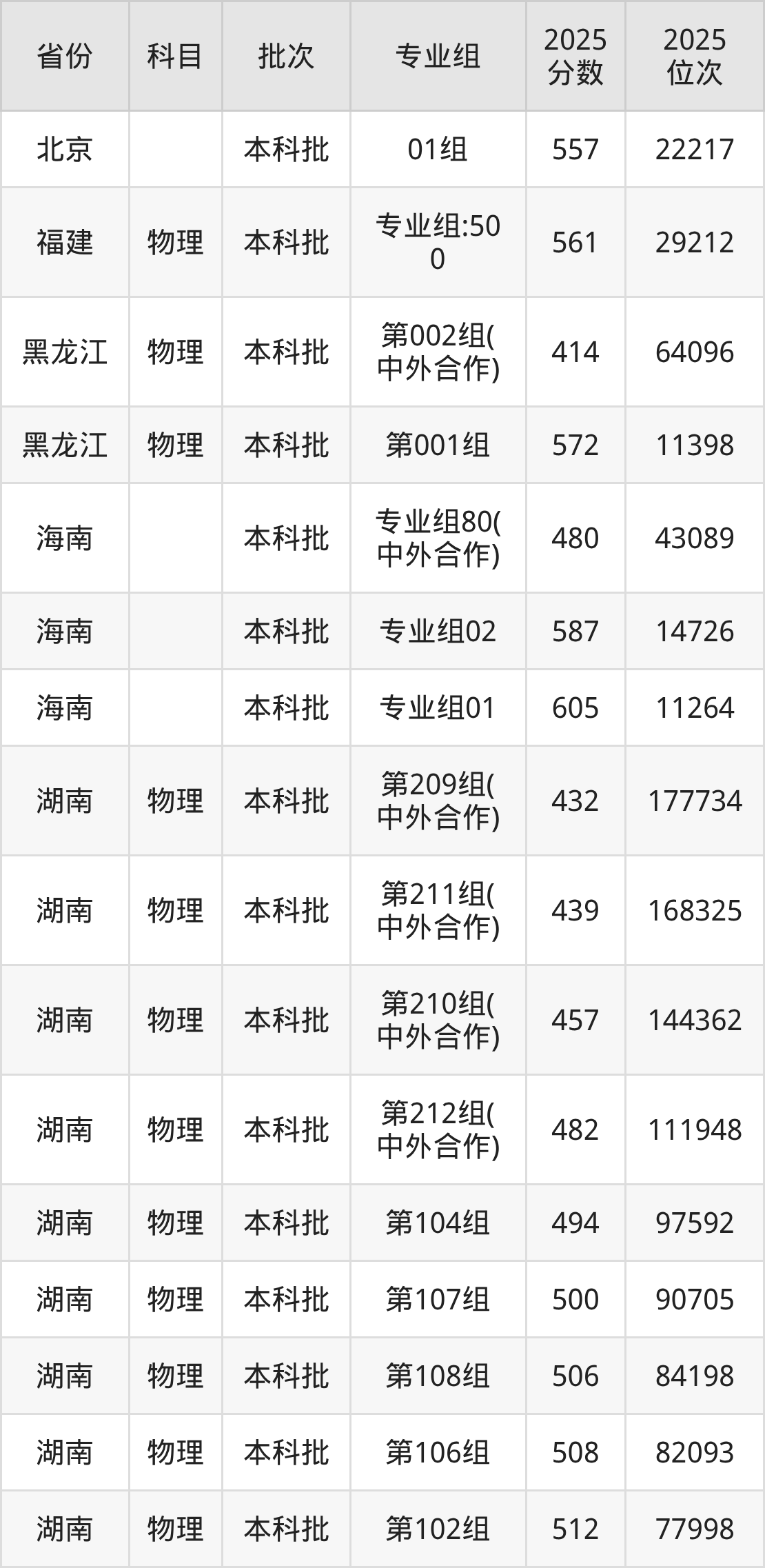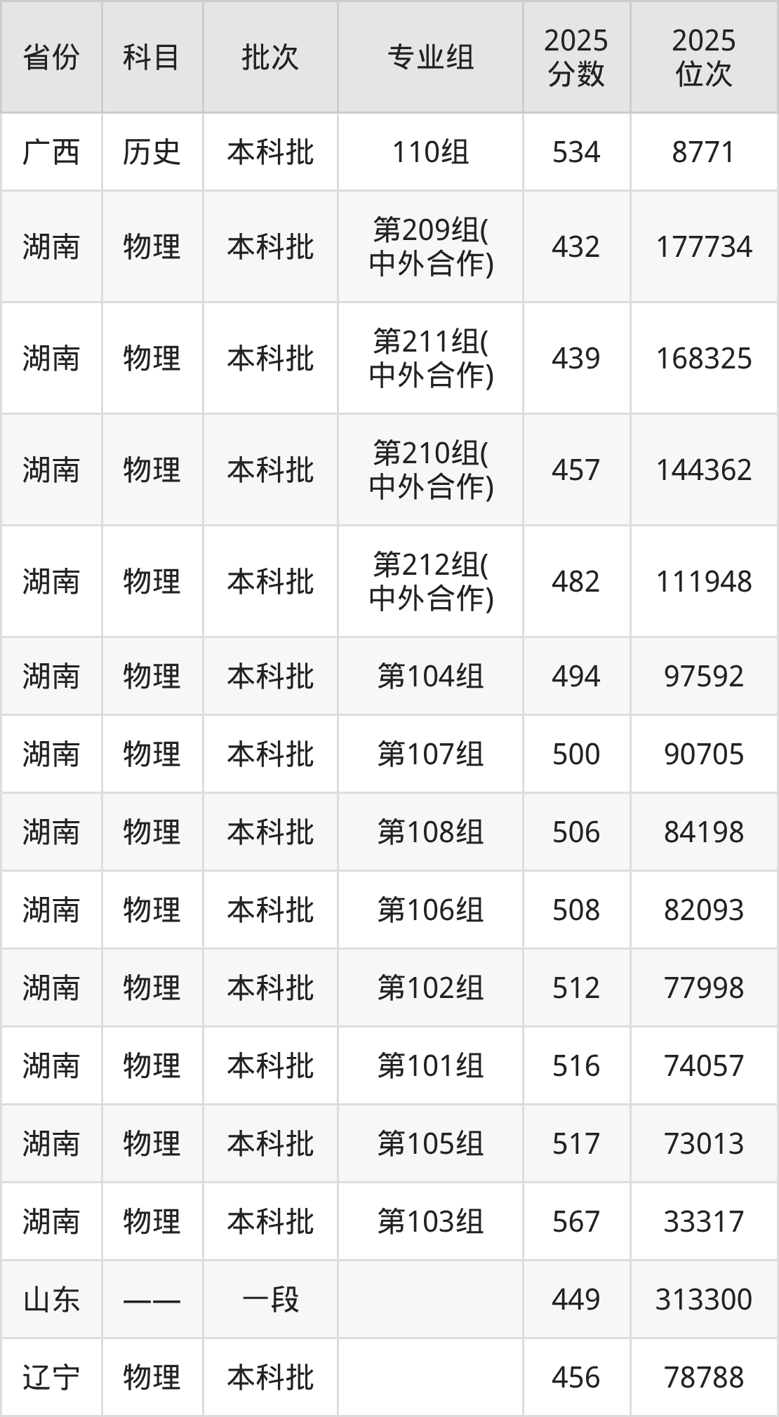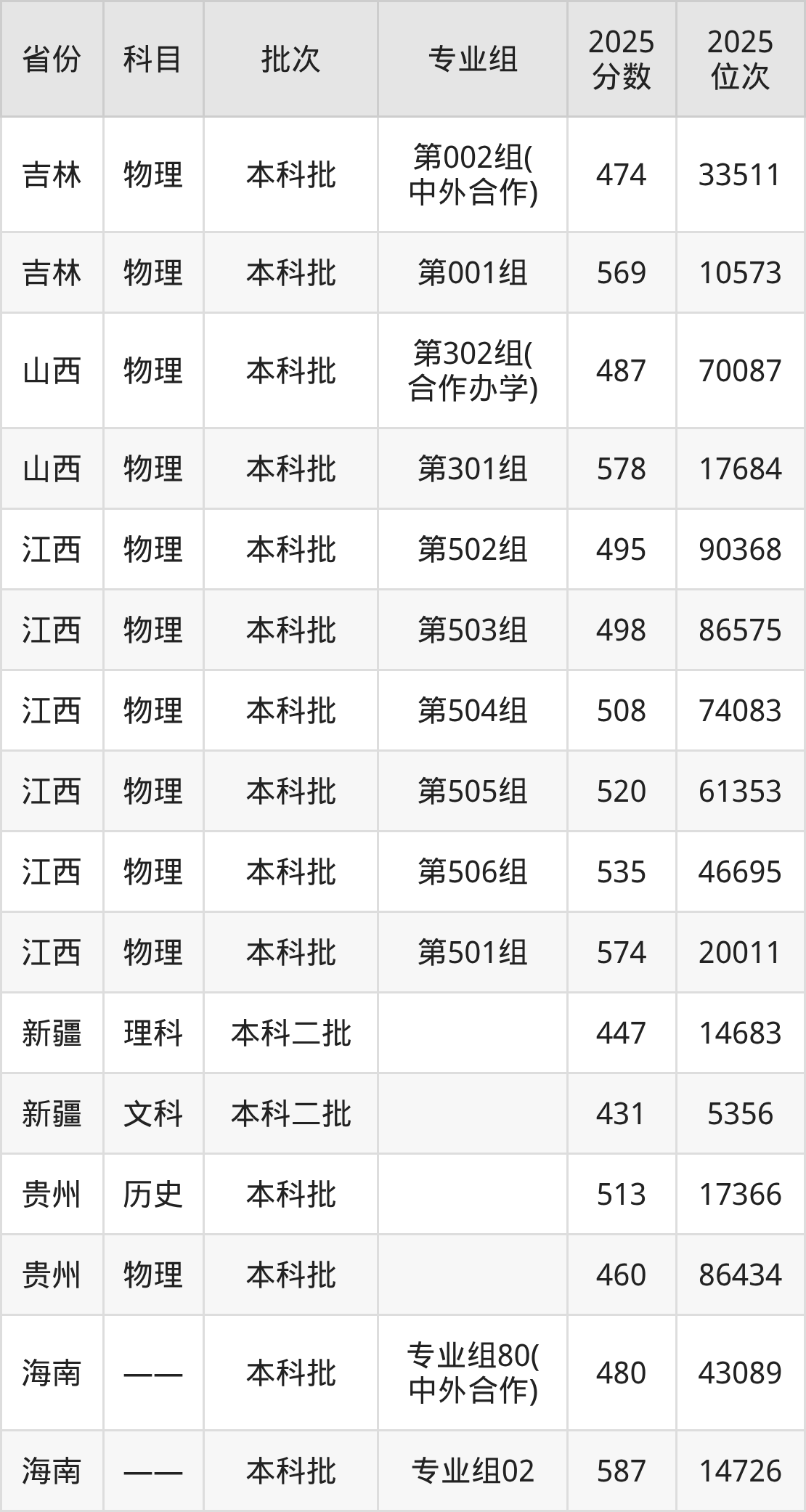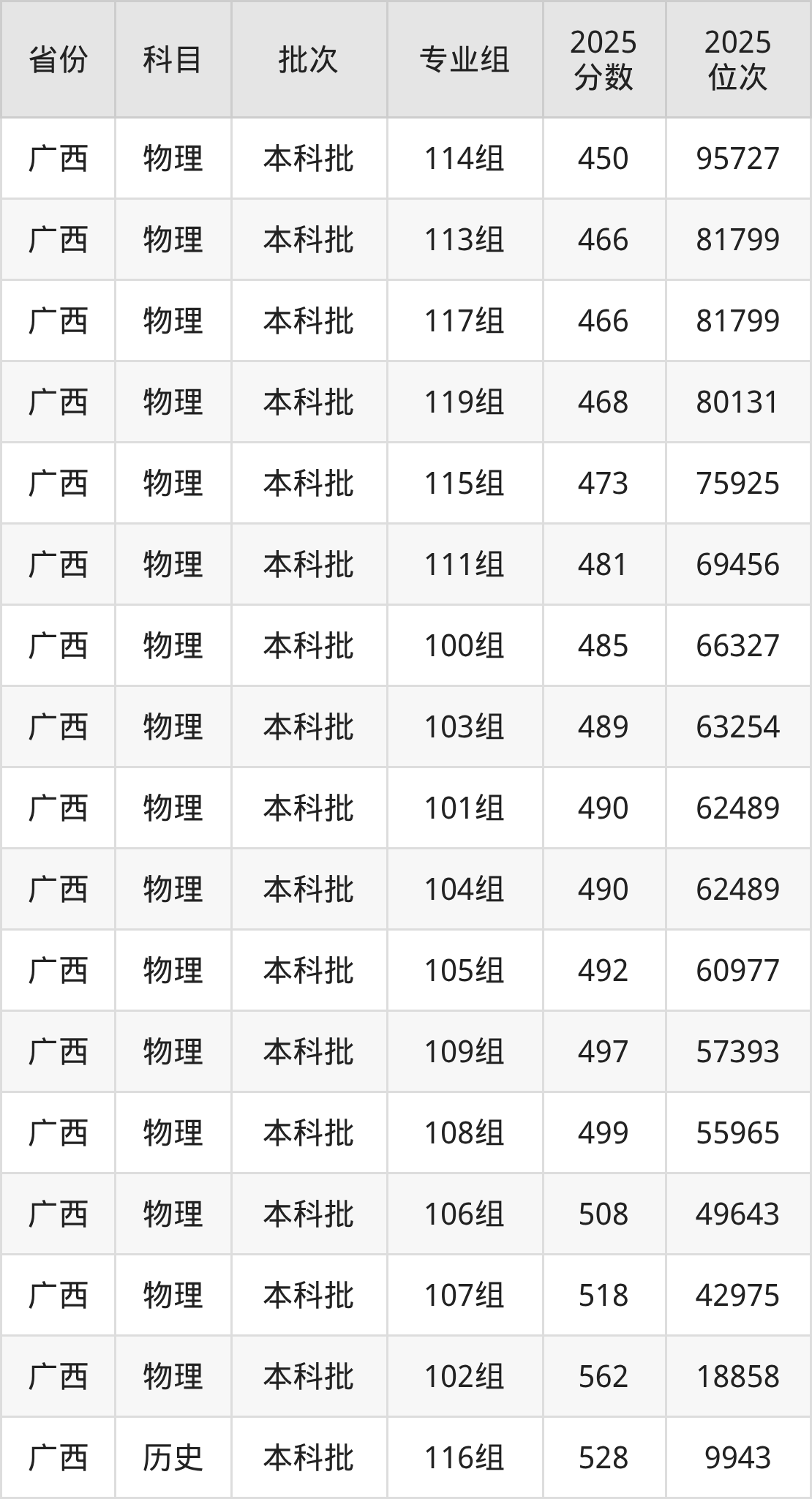 2025年在本科物理类进行招生,各专业组分数线详情如下: