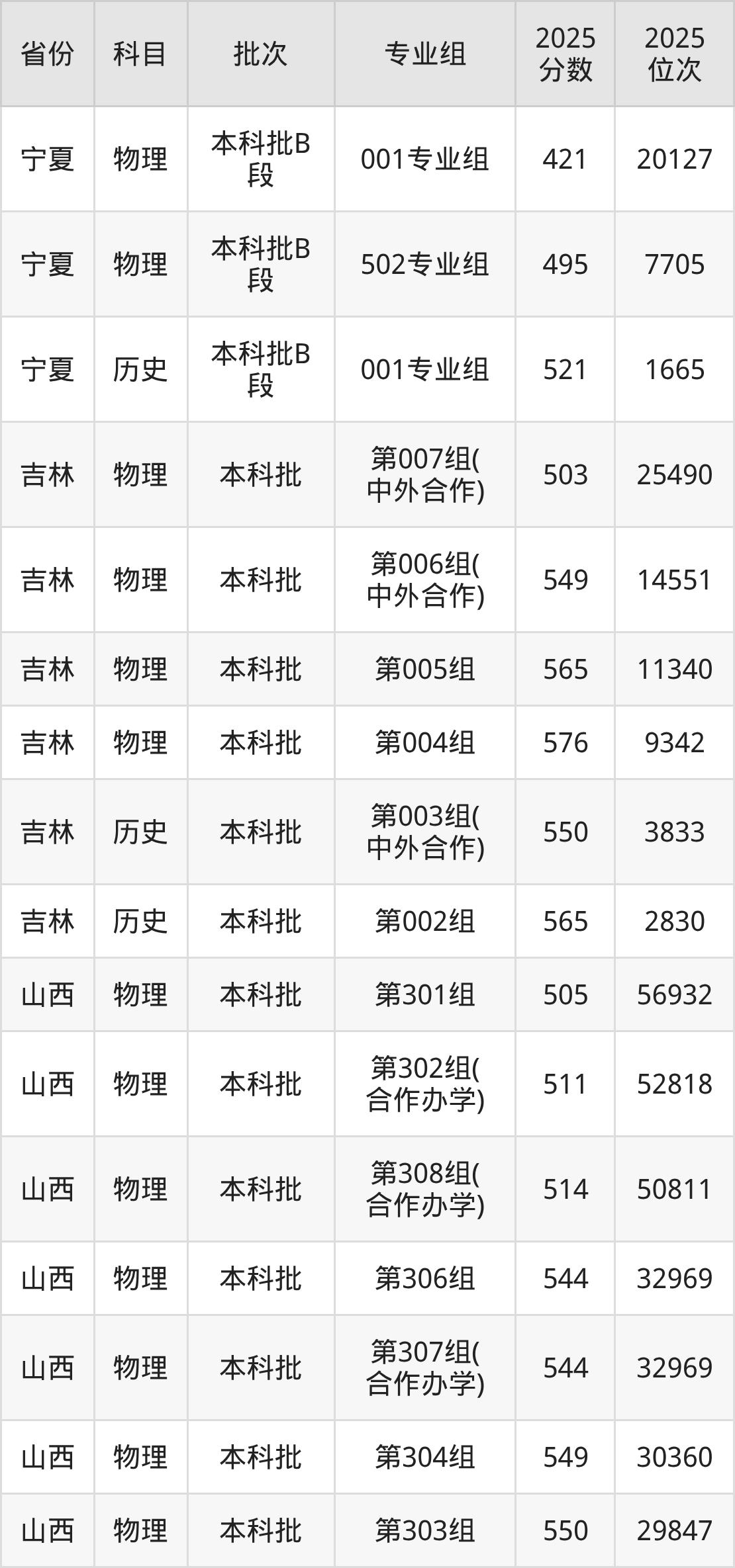 普通类本科物理类最低503分,本科历史类最低550分