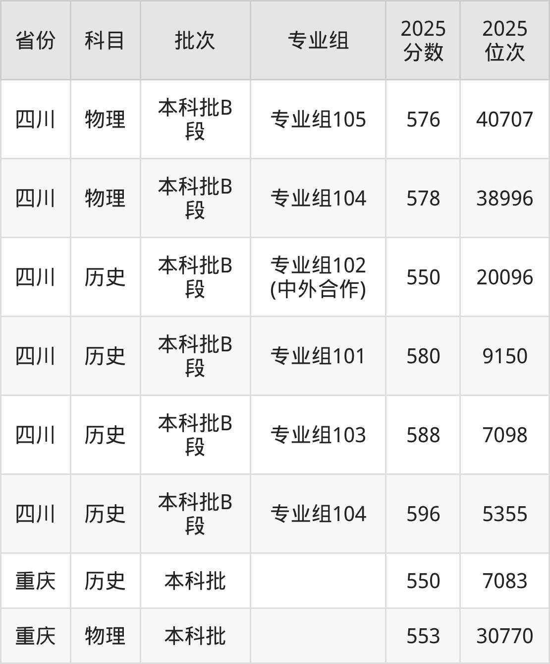2025年投档录取最低分为550分,录取最低位次为7083名。