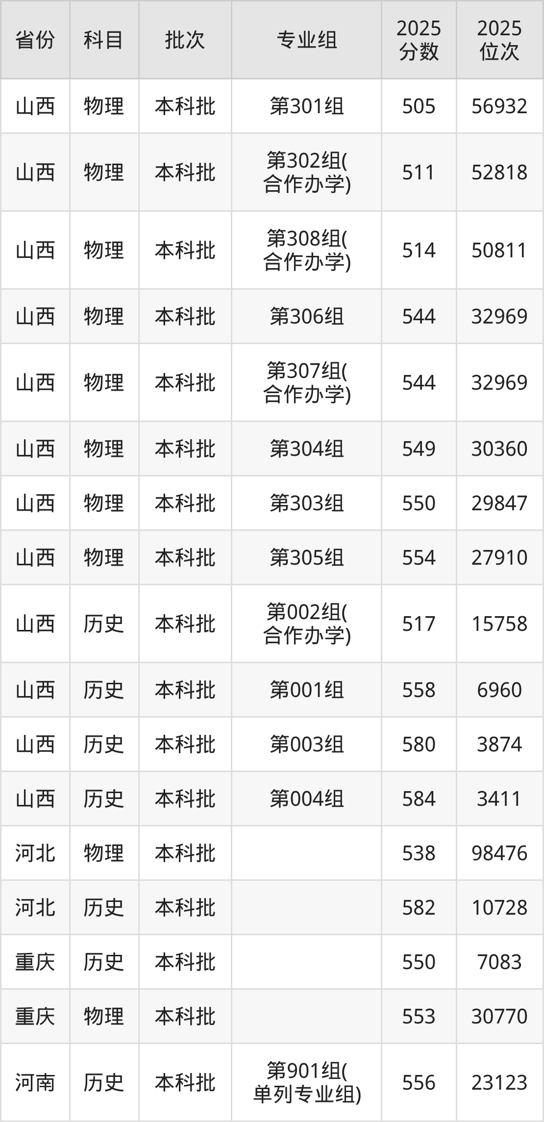 普通类本科历史类最低554分,本科物理类最低524分