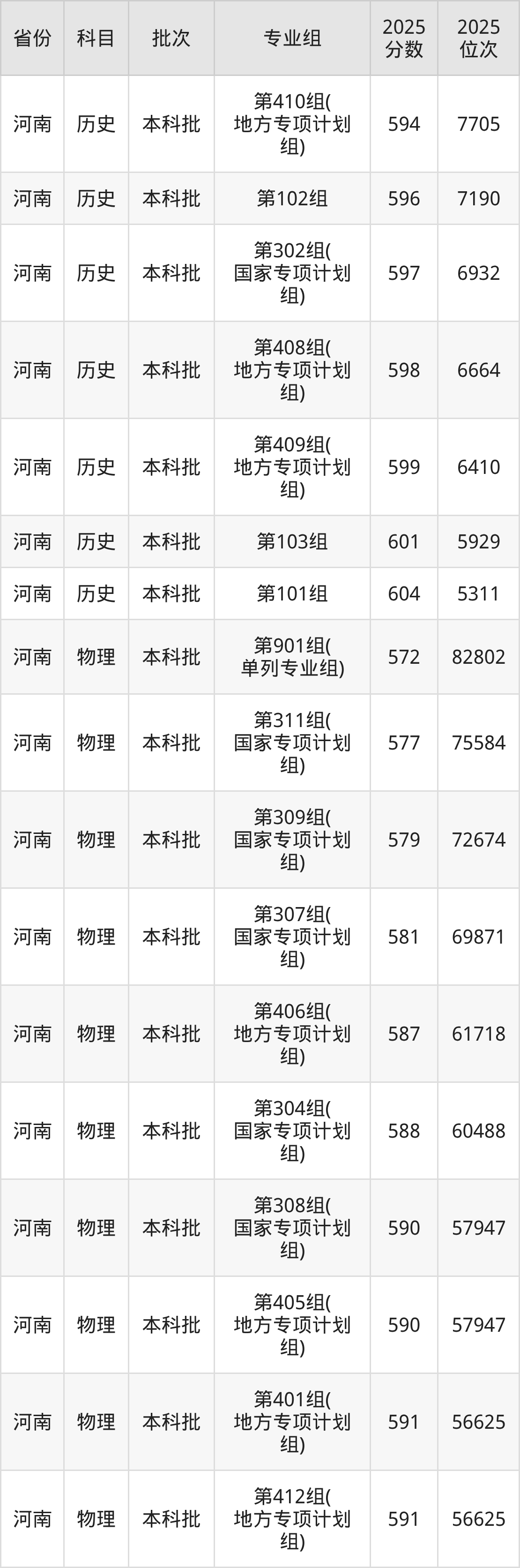 河南大学第101组:2025年投档录取最低分为579分,录取最低位次为5060名。