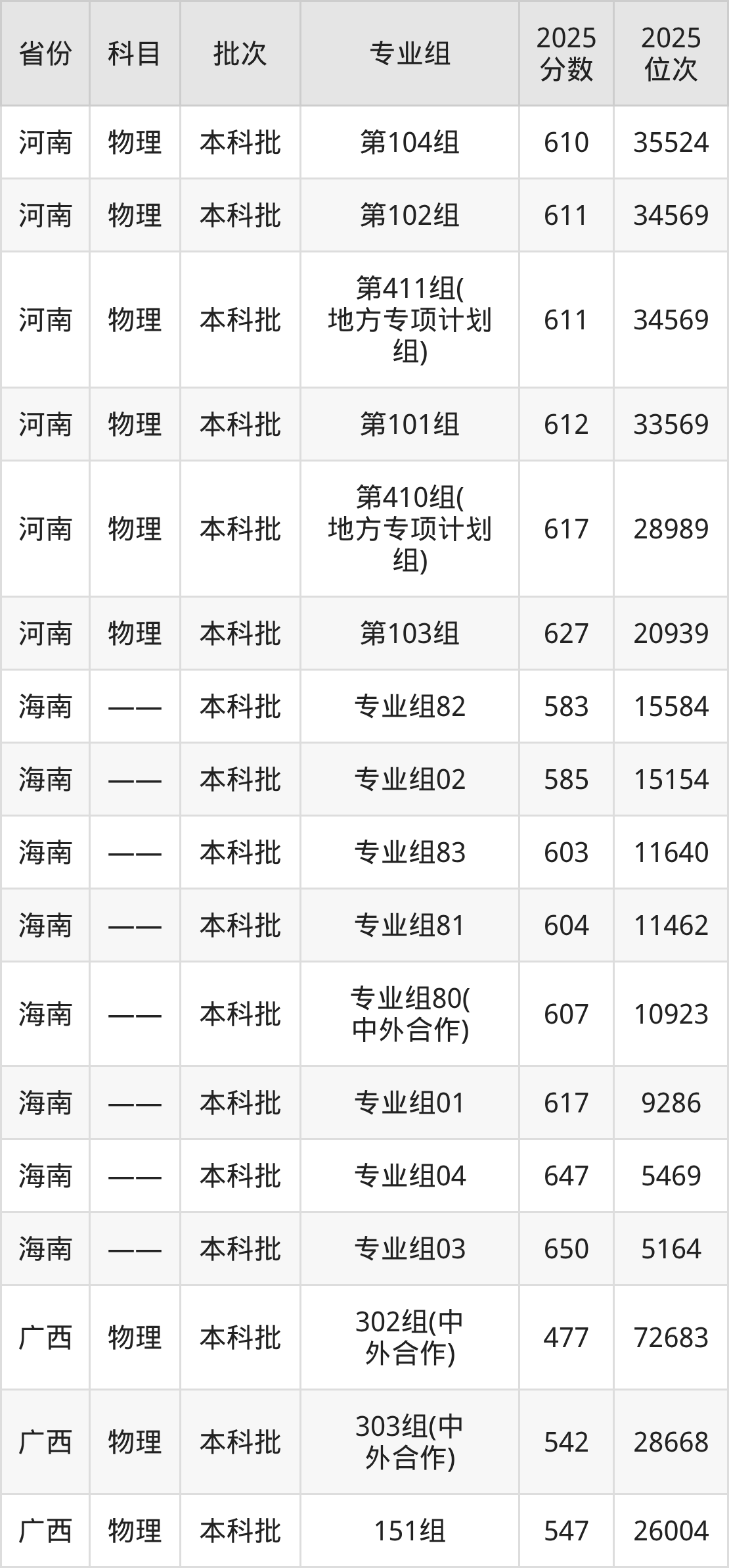 河南大学007组(中外合作办学):2025年投档录取最低分为592分,录取最低位次为32154名。
