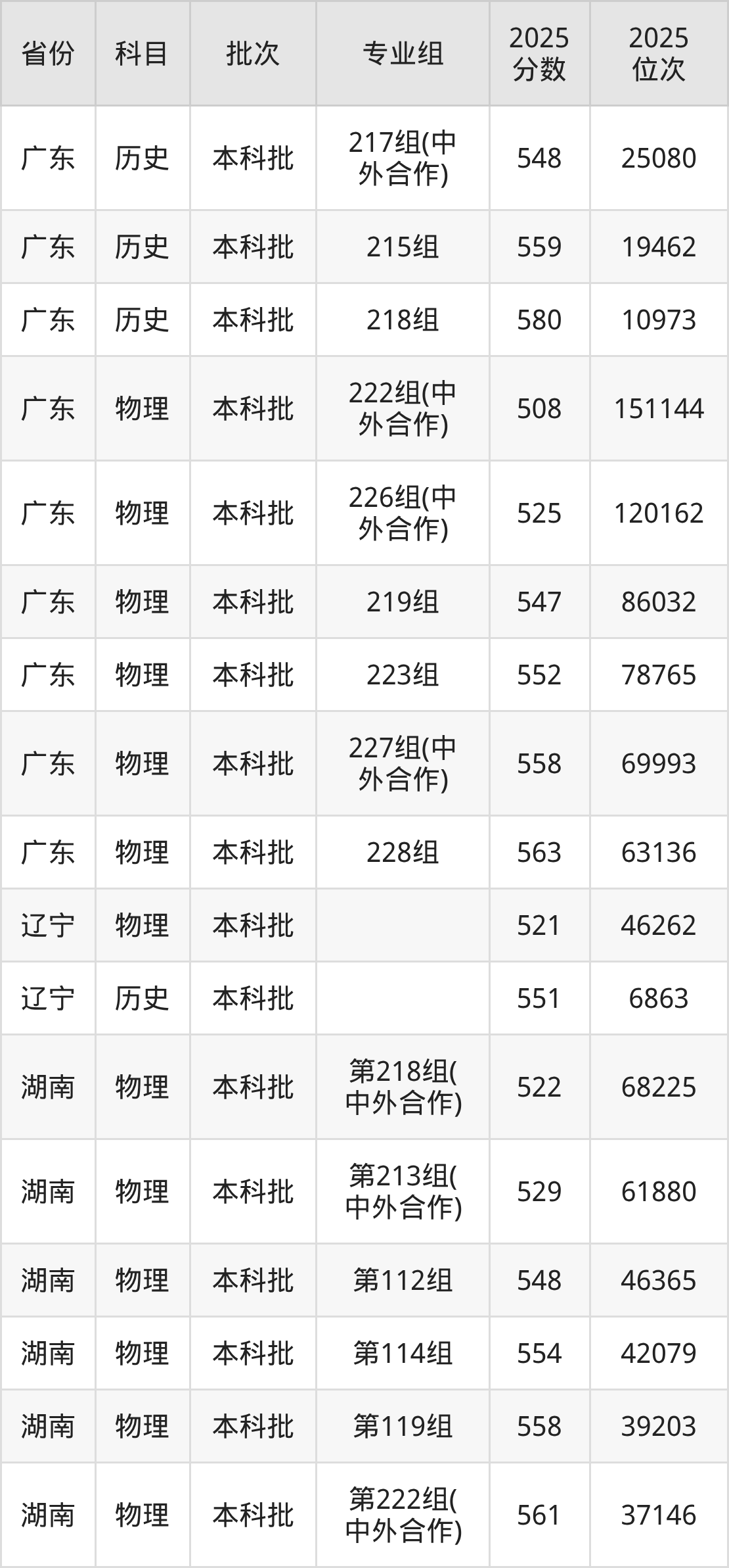 河南大学第222组(中外合作办学或国际项目):2025年投档录取最低分为561分,录取最低位次为37146名。