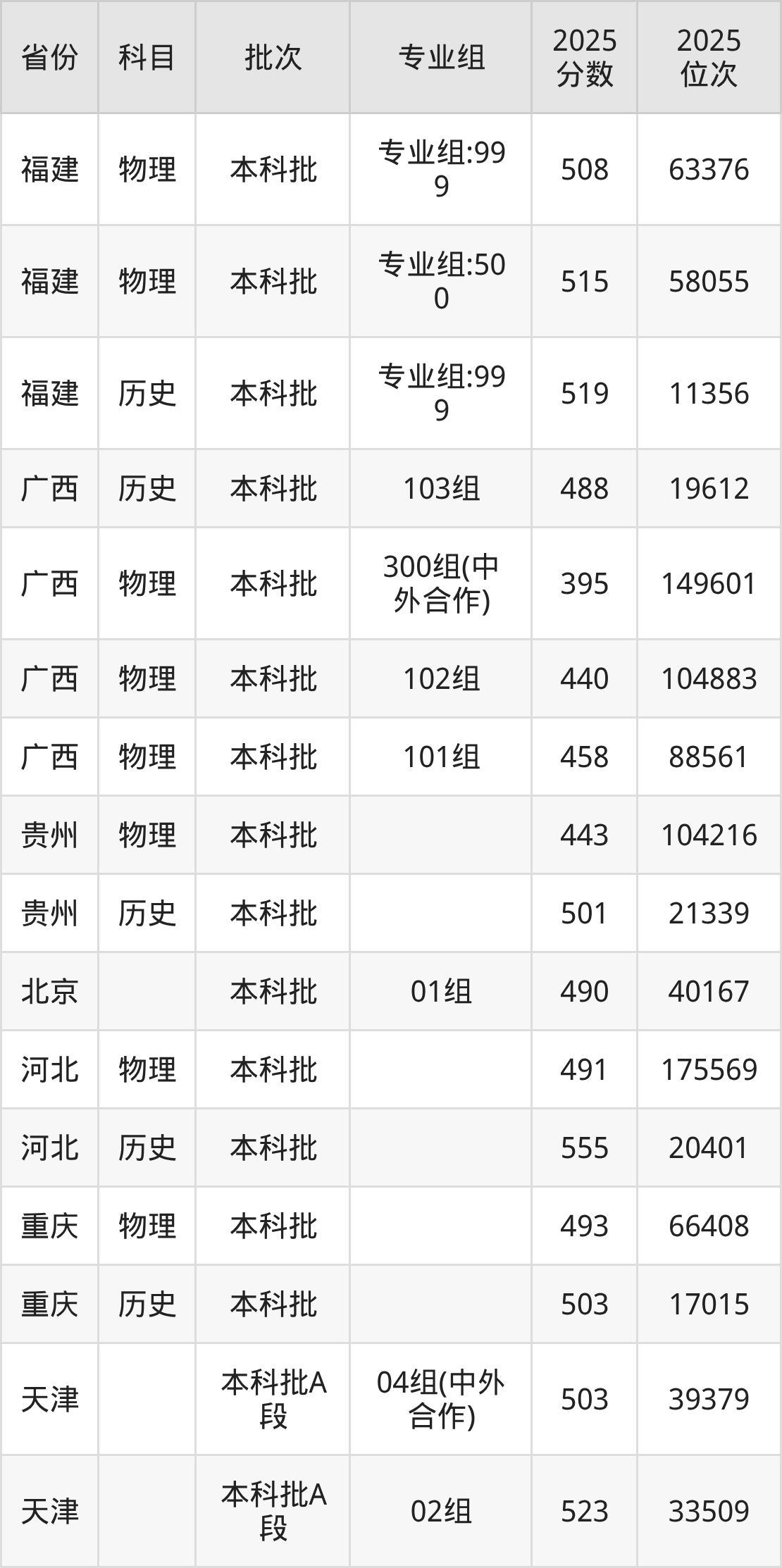 2025年投档录取最低分为447分,录取最低位次为83266名。