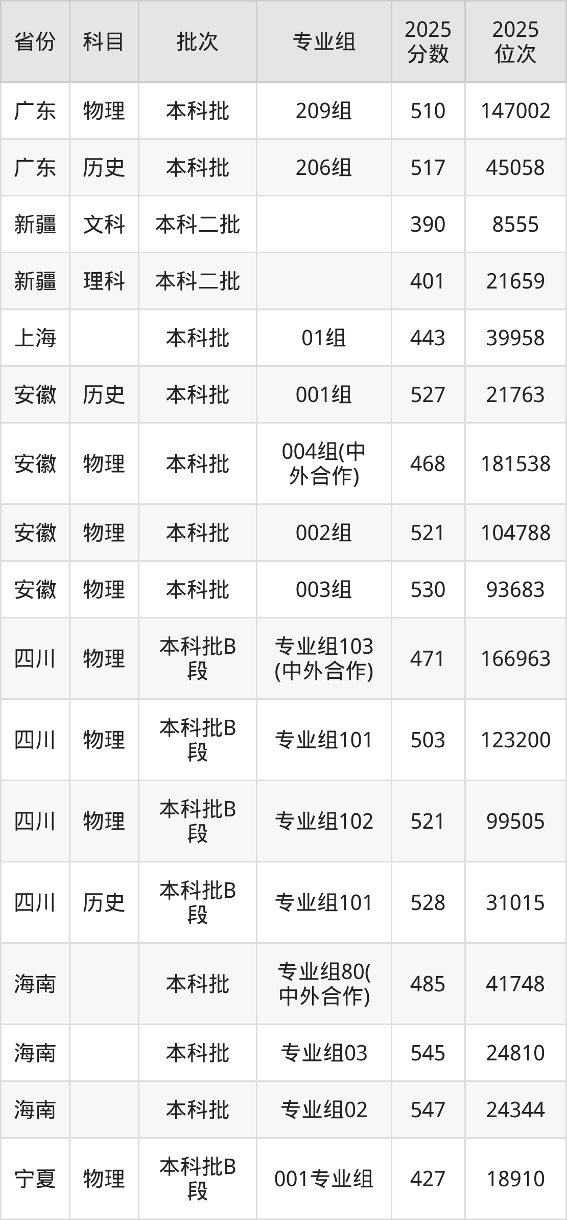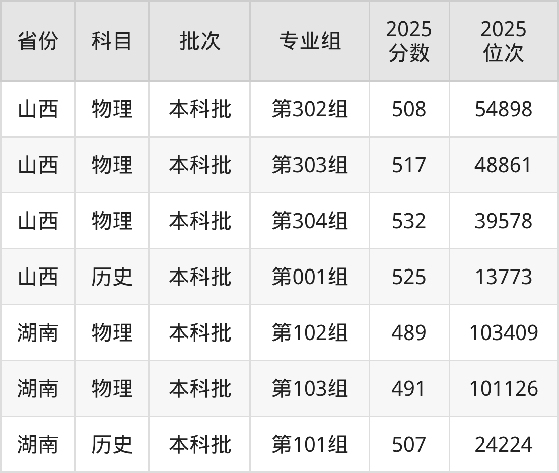 2025年投档录取最低分为513分,录取最低位次为12651名。