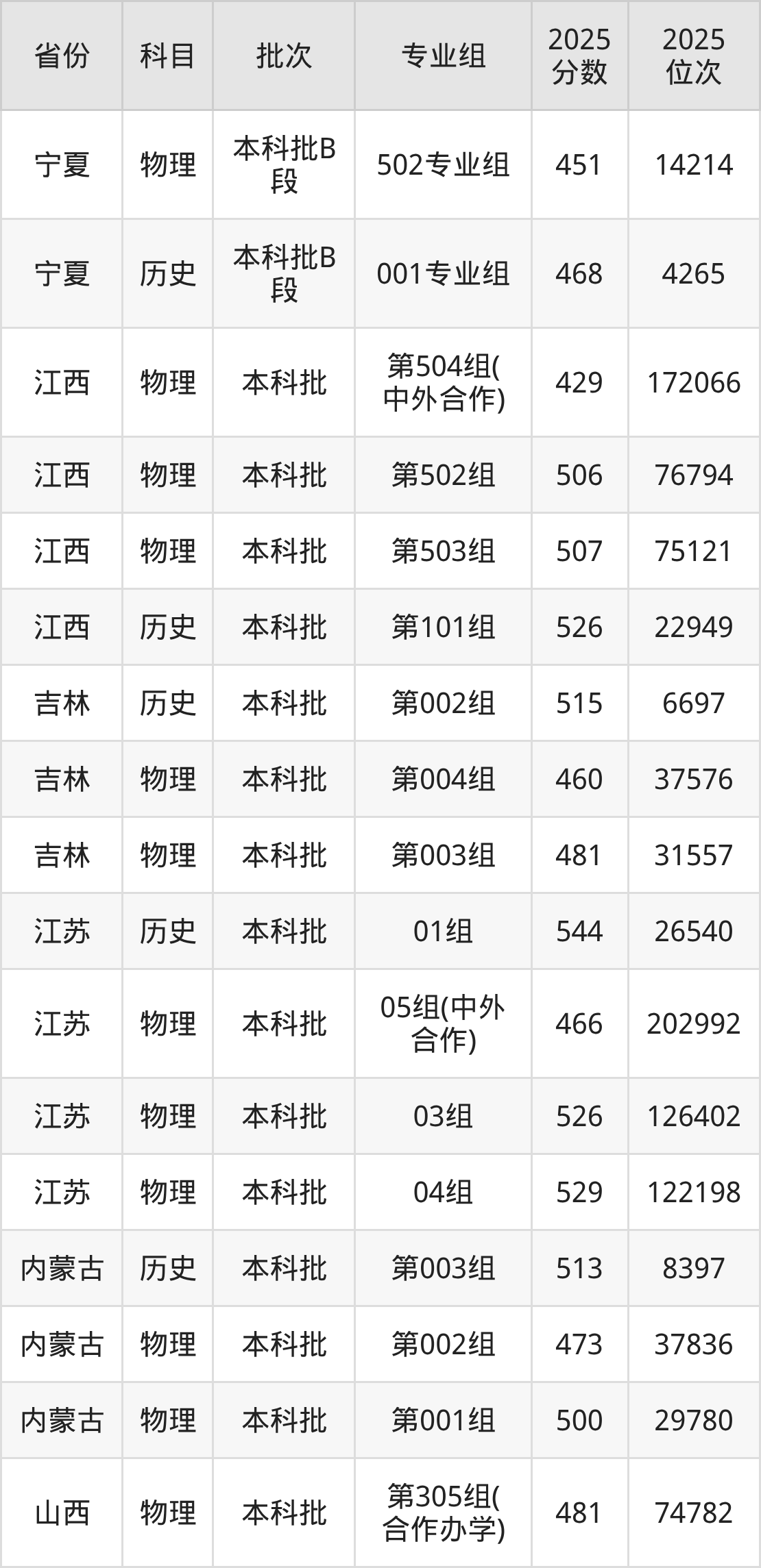山东交通学院004专业组(中外合作办学):2025年投档录取最低分为421分,录取最低位次为68815名。
