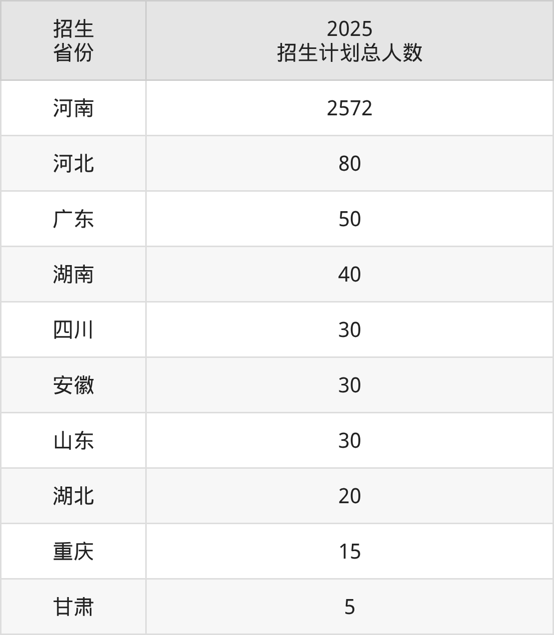 2025年南阳农业职业学院面向全国10个省市开展专科招生;招生专业共48个,招生人数共2872人。2025年在河南省招生计划总人数是2572人,其中,南阳农业职业学院在河南省招生人数最多的是小学教育。南阳农业职业学院在各省具体招生人数情况如下表。