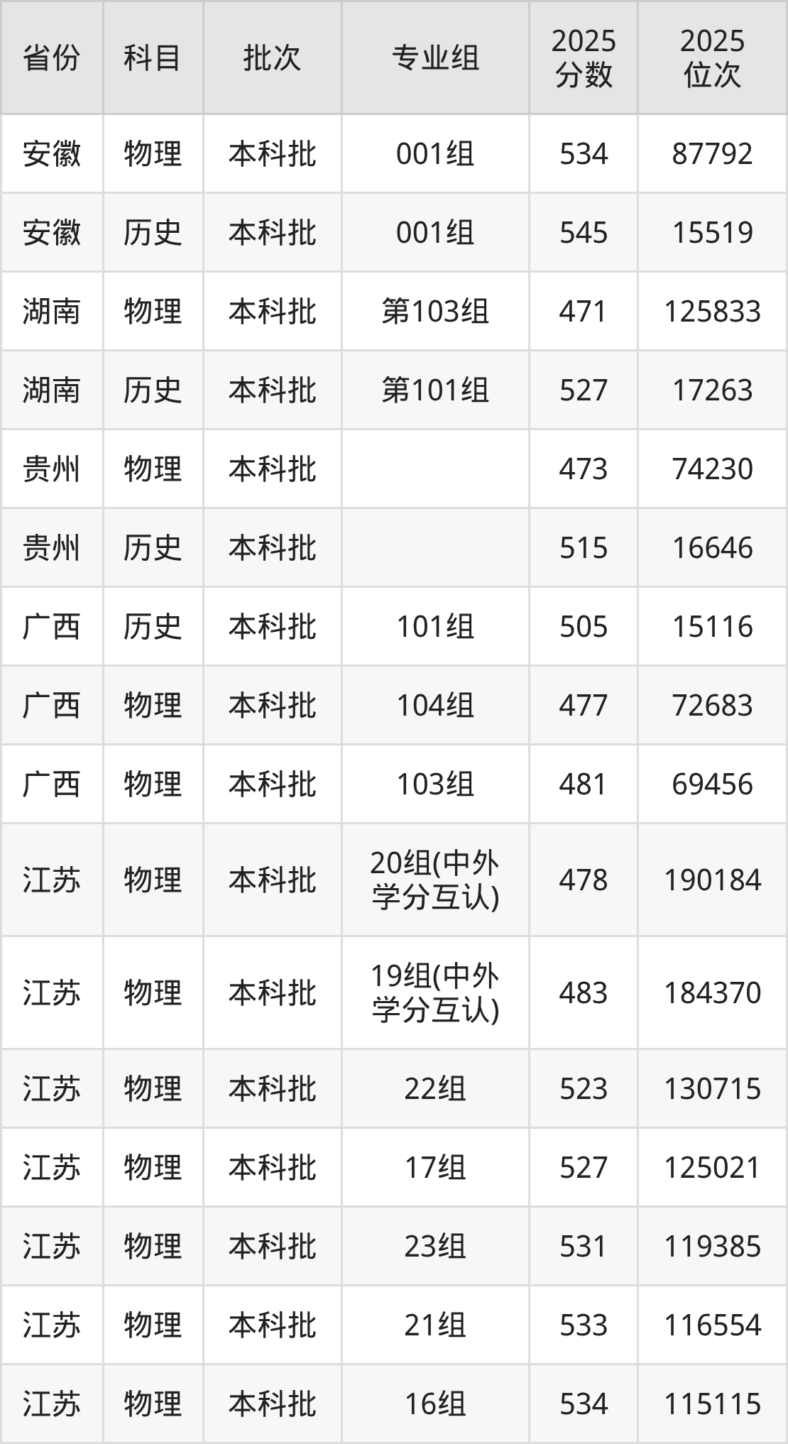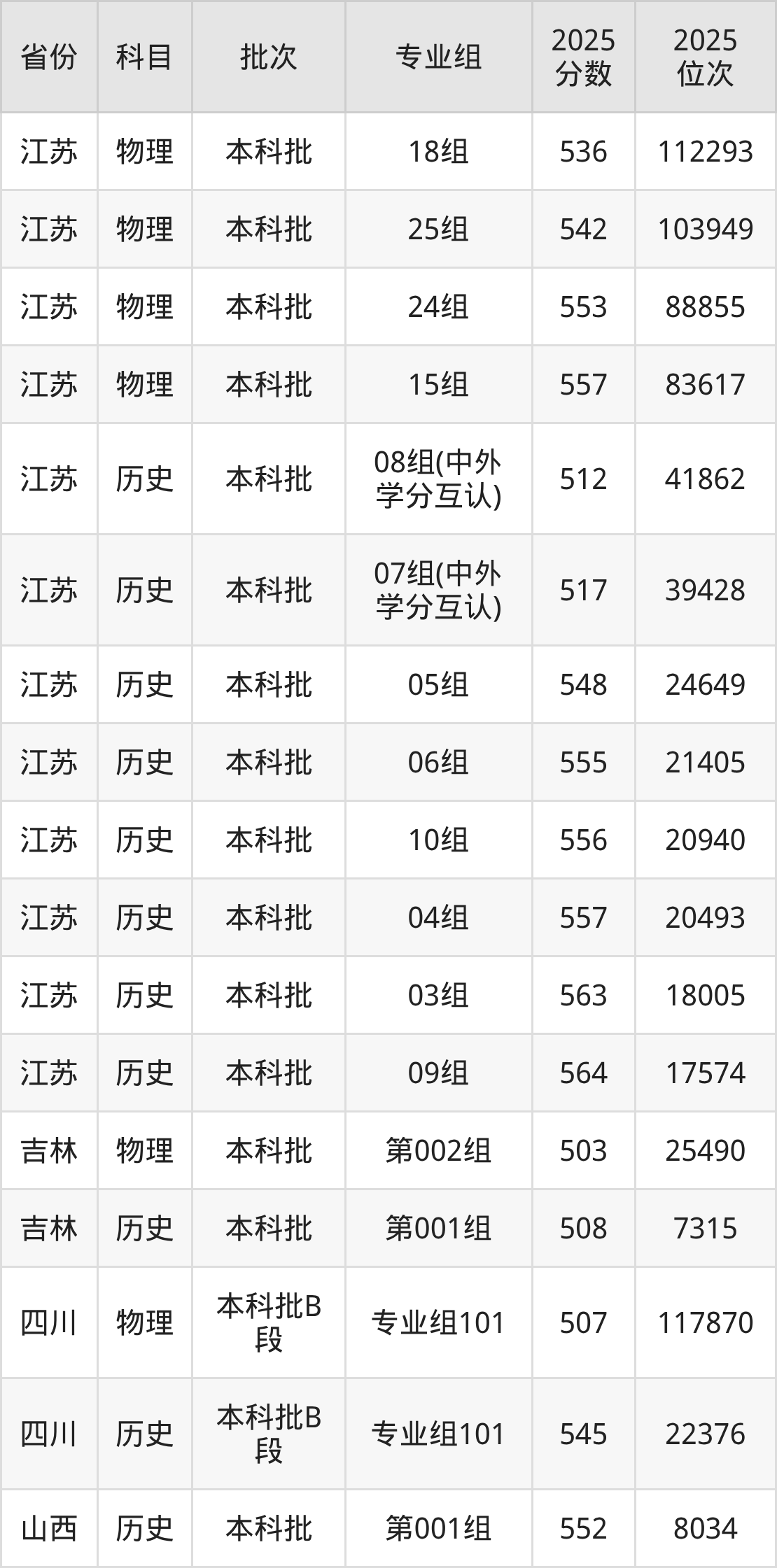 2025年在本科历史类进行招生,各专业组分数线详情如下: