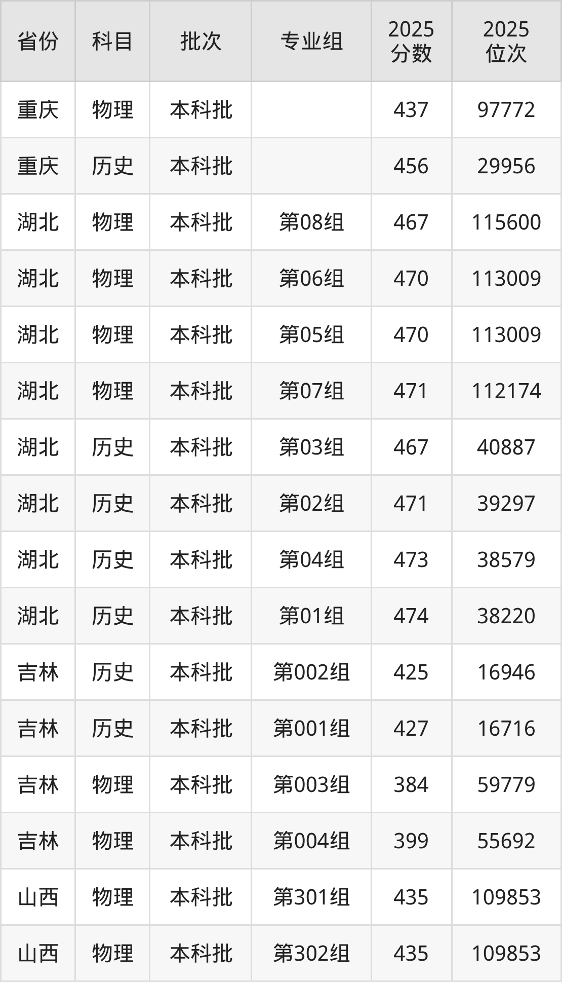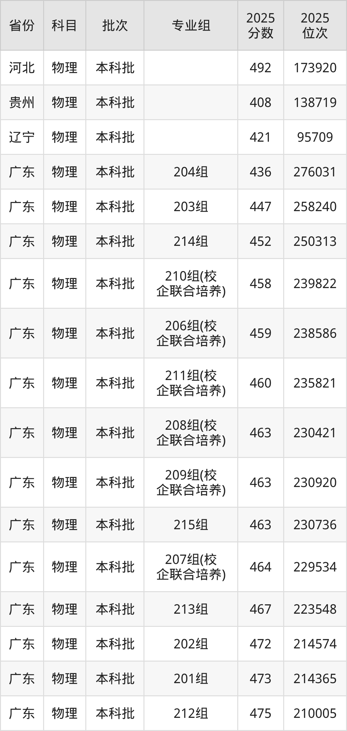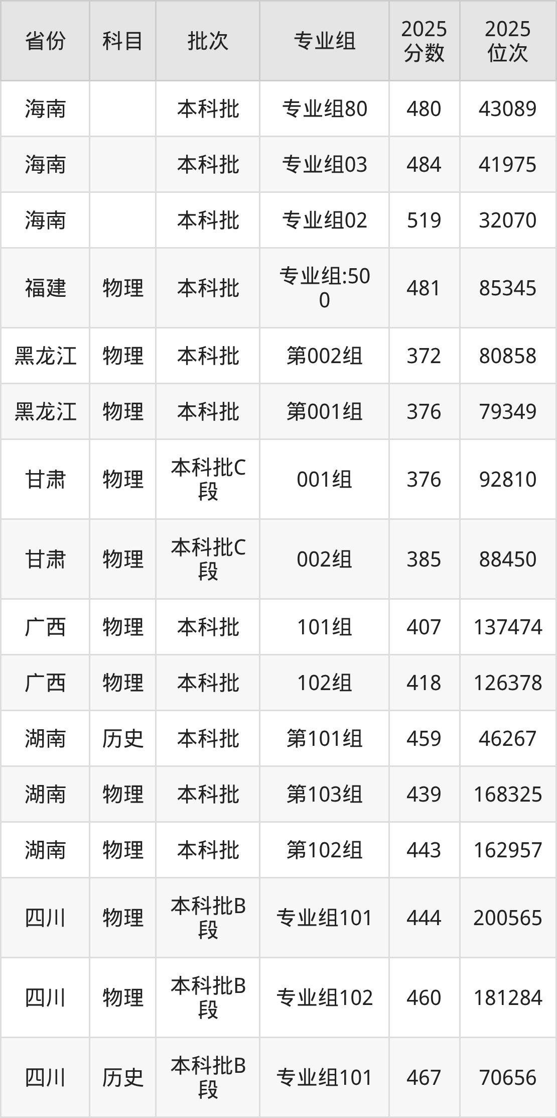 2025年在本科物理类进行招生,各专业组分数线详情如下: