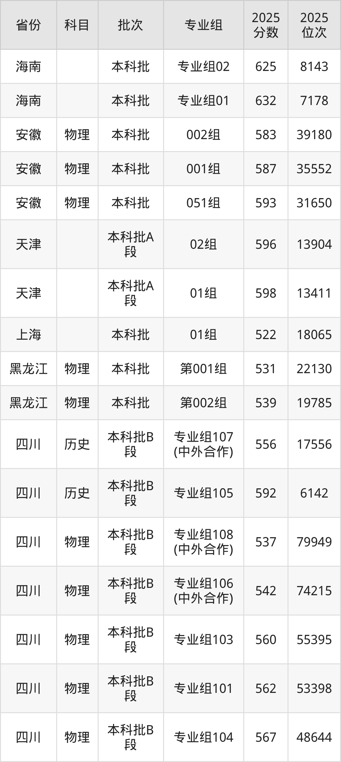 经济学(中外高水平大学学生交流计划):2025年投档录取最低分为592分。