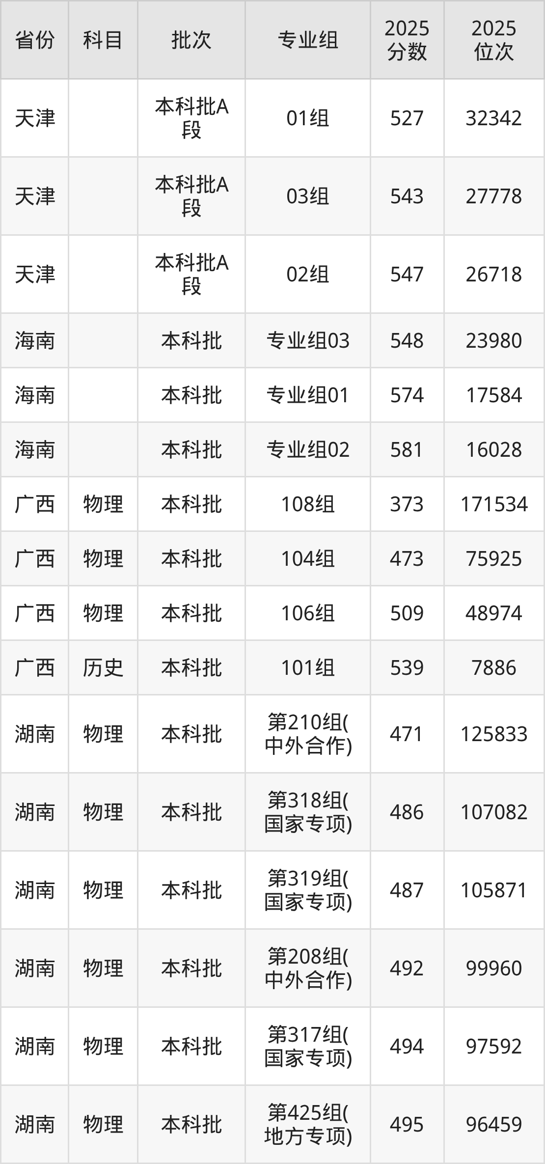 中南林业科技大学002组:2025年投档录取最低分为533分,录取最低位次为89350名。