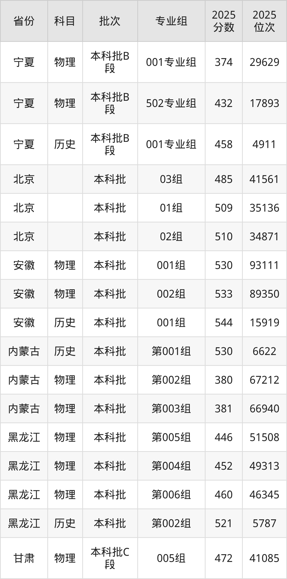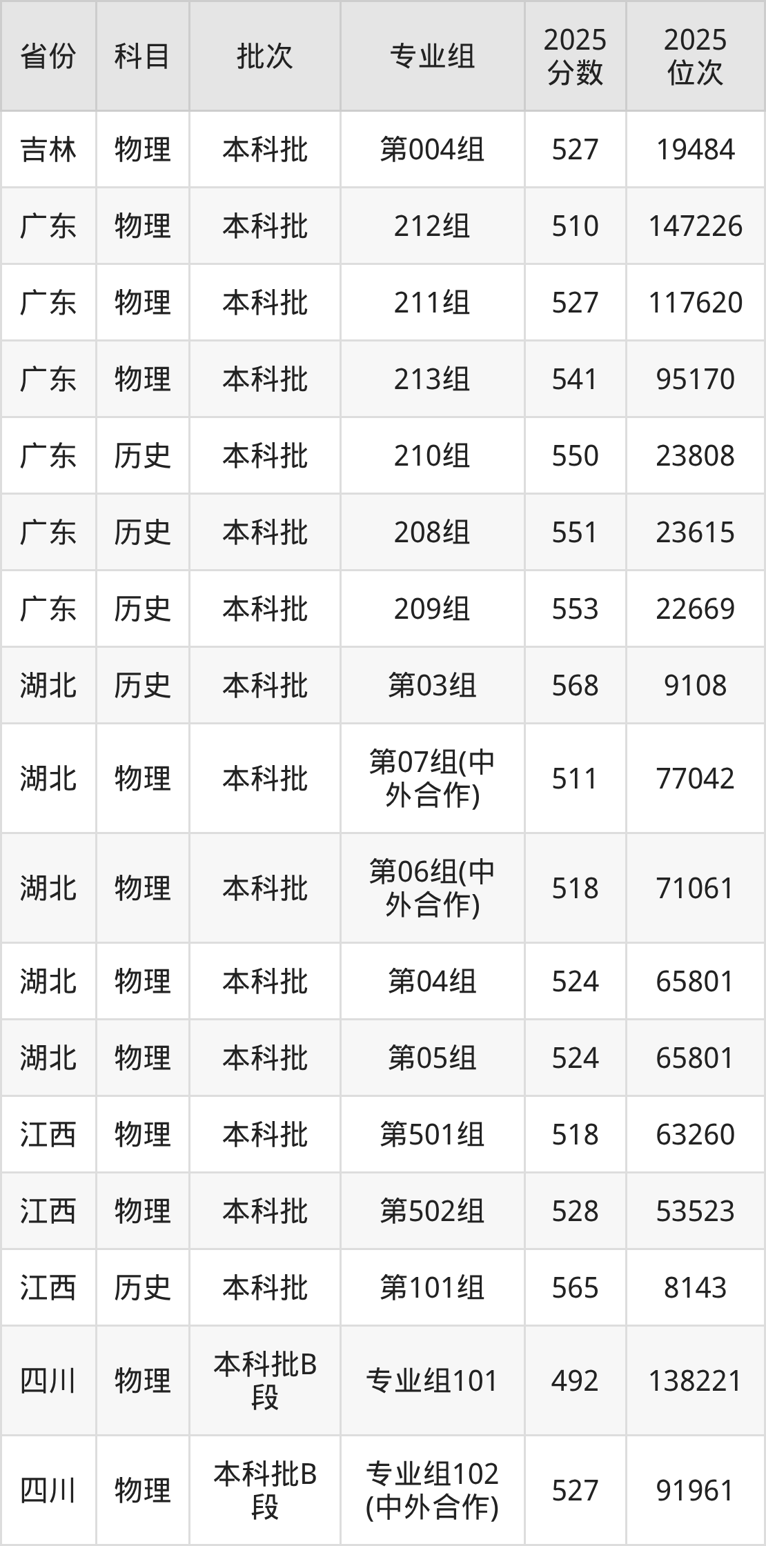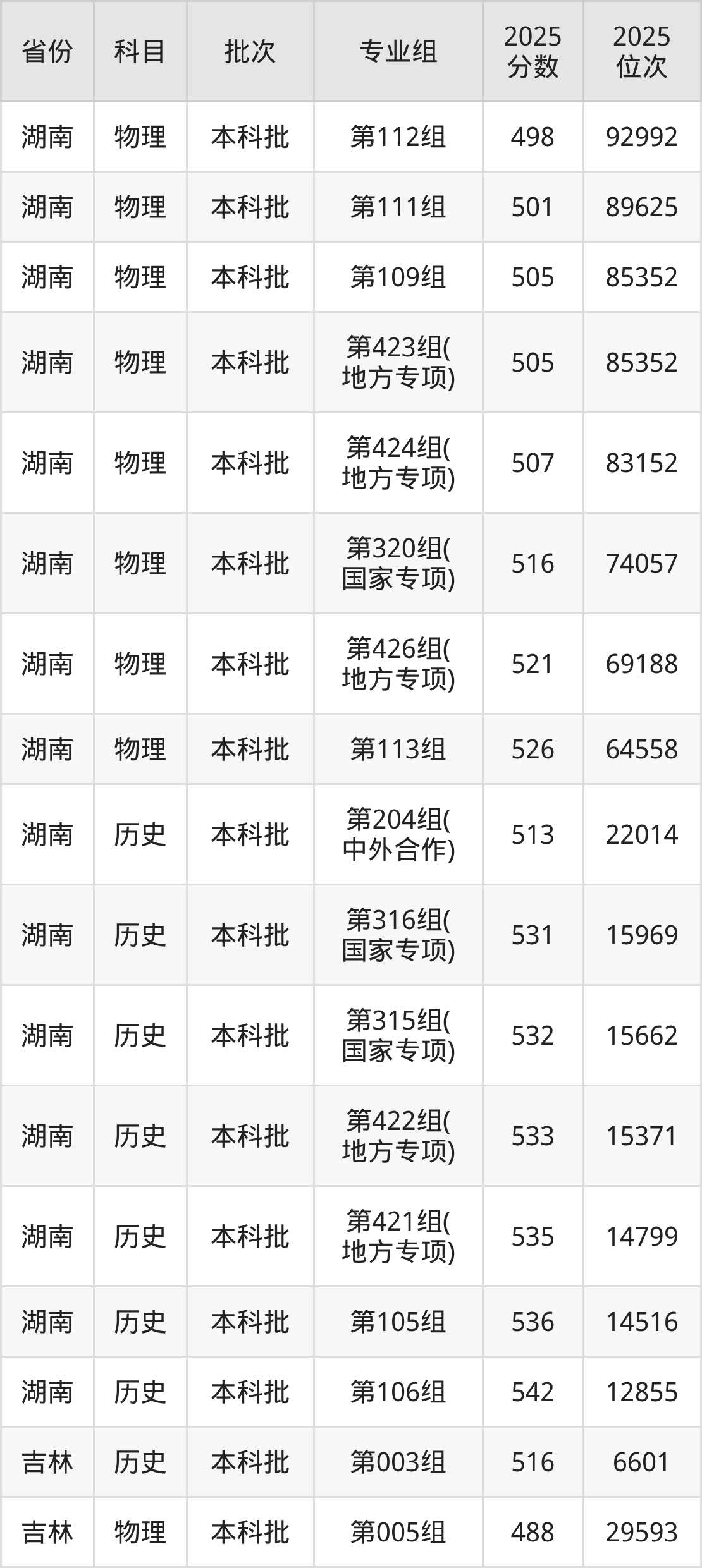 中南林业科技大学001组:2025年投档录取最低分为530分,录取最低位次为93111名。
