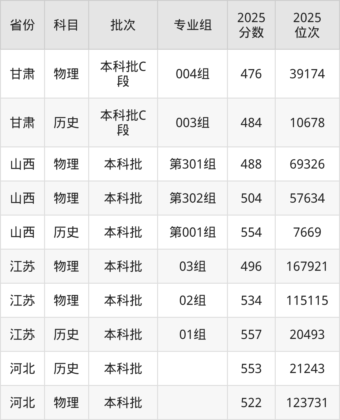 中南林业科技大学03组:2025年投档录取最低分为496分,录取最低位次为167921名。