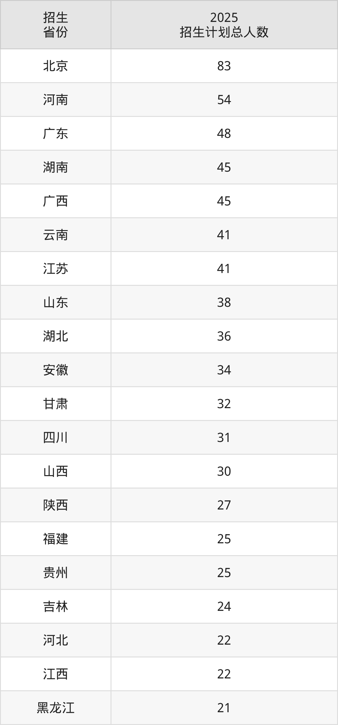 2025年北京外国语大学面向全国29个省市开展本科招生;招生专业共37个,招生人数共837人。2025年在北京市招生计划总人数是83人,其中,北京外国语大学在北京市招生人数最多的是英语。北京外国语大学在各省具体招生人数情况如下表。