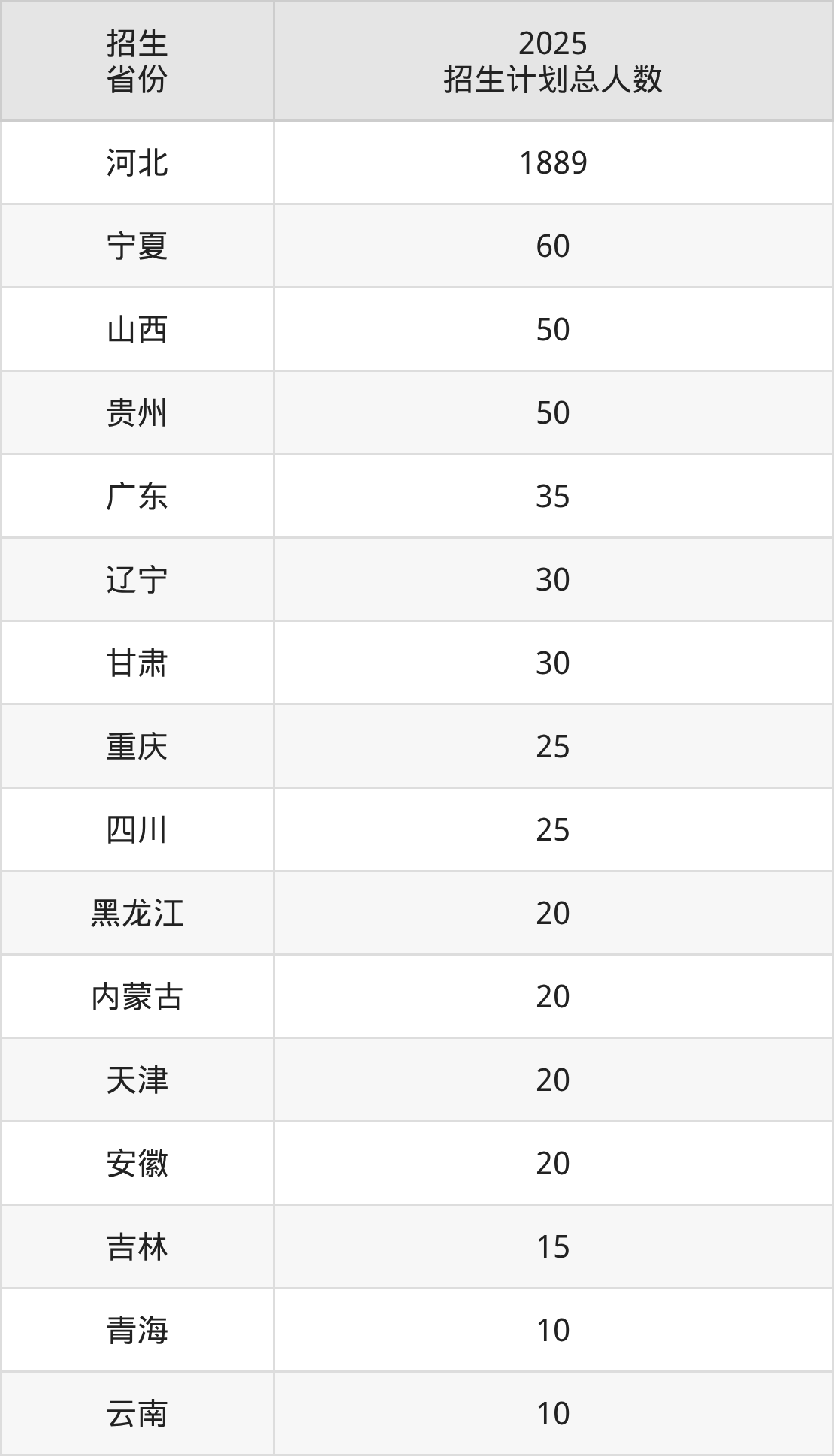 2025年唐山职业技术学院面向全国16个省市开展专科招生;招生专业共39个,招生人数共2309人。2025年在河北省招生计划总人数是1889人,其中,唐山职业技术学院在河北省招生人数最多的是口腔医学。唐山职业技术学院在各省具体招生人数情况如下表。