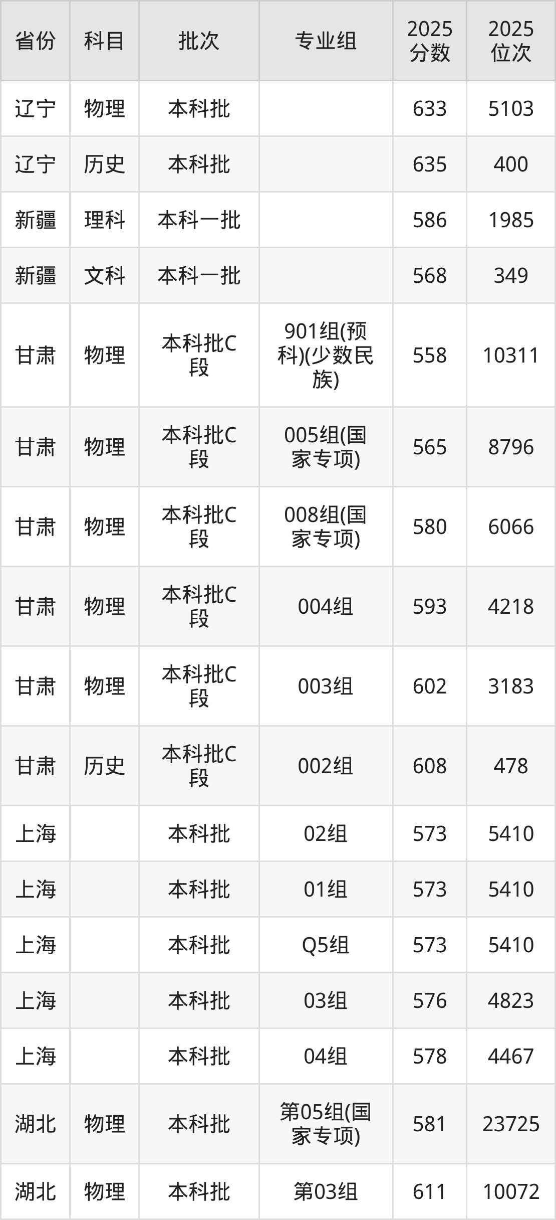 上海财经大学008专业组(国家专项计划):2025年投档录取最低分为580分,录取最低位次为6066名。