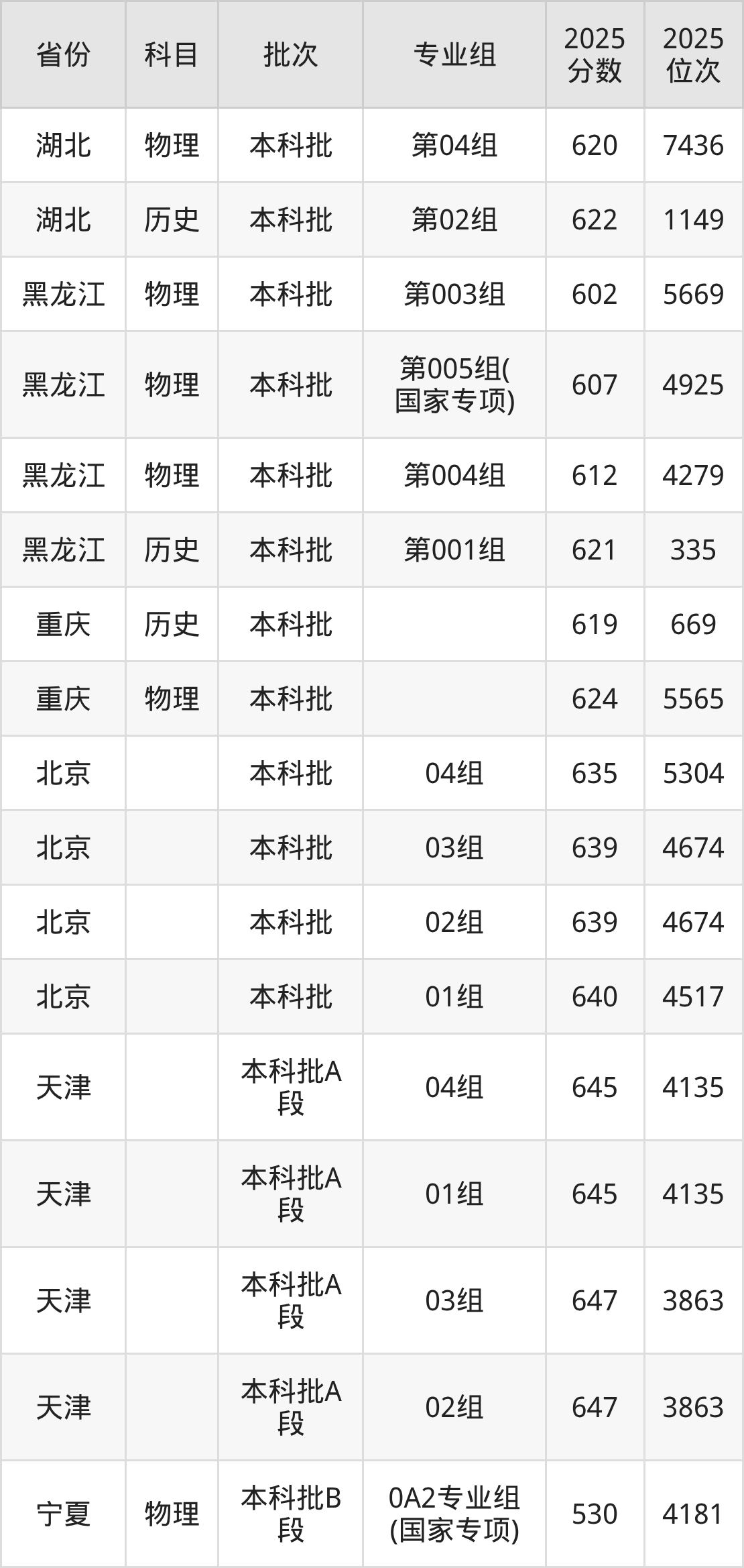 2025年投档录取最低分为633分,录取最低位次为5103名。