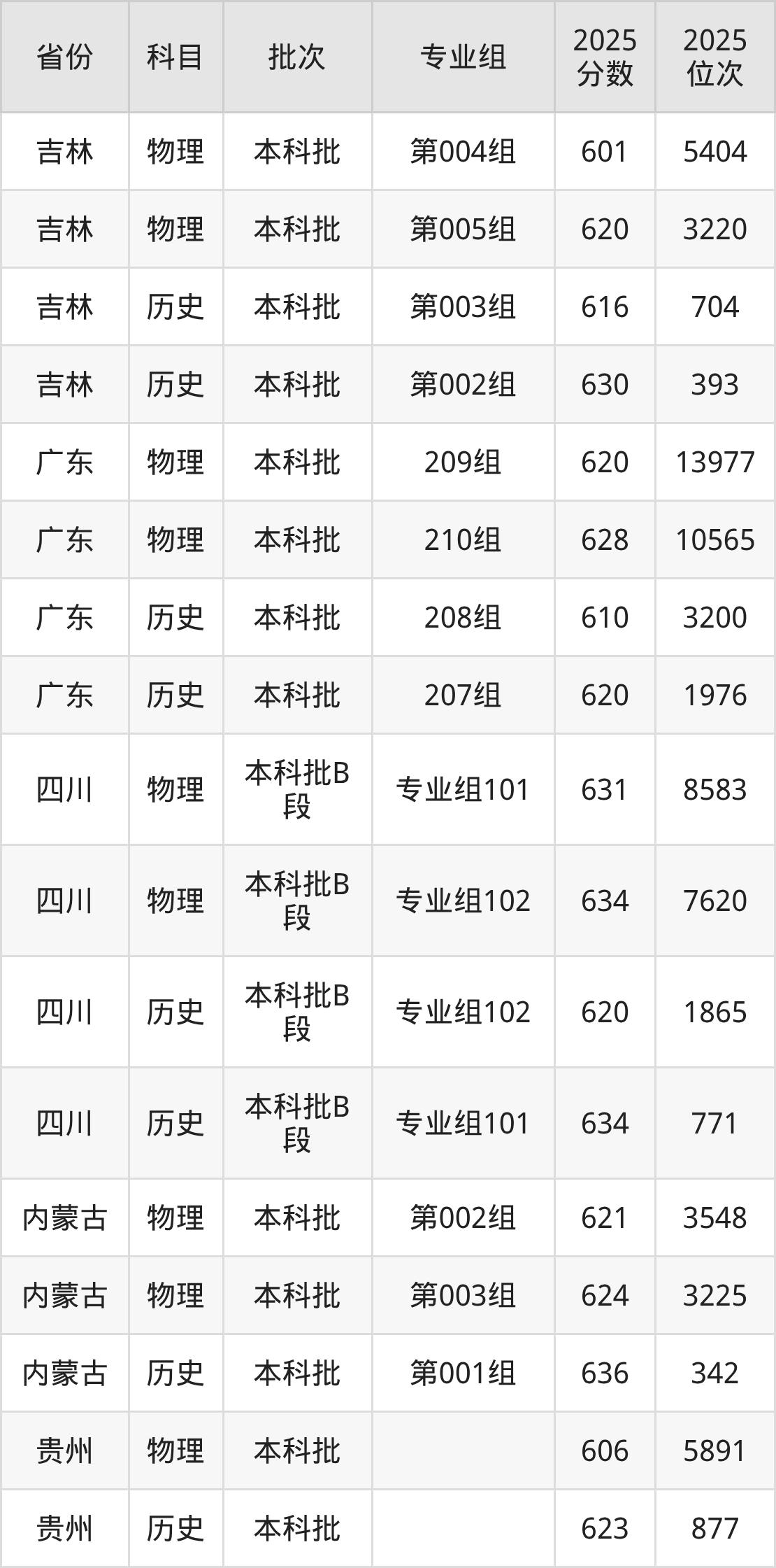 2025年投档录取最低分为623分,录取最低位次为877名。