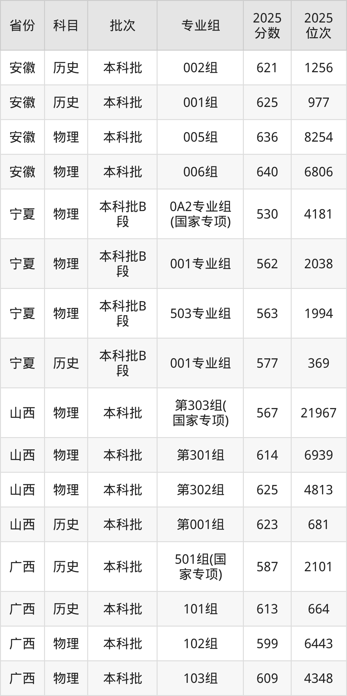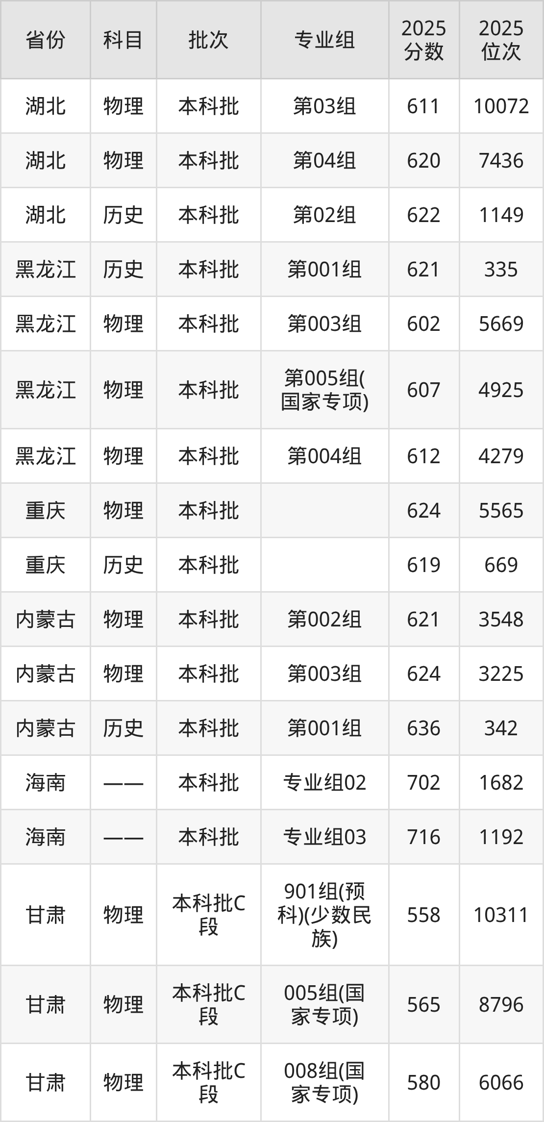 普通类本科物理类最低581分,本科历史类最低622分