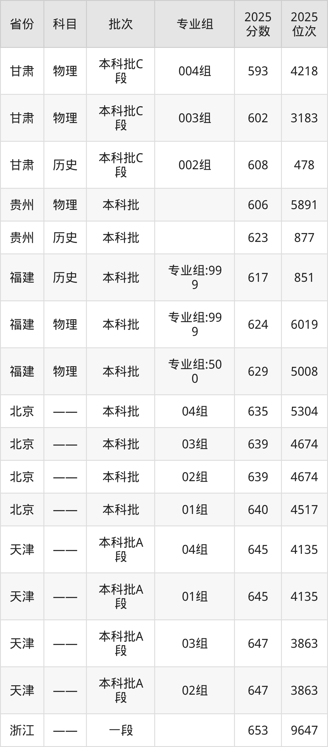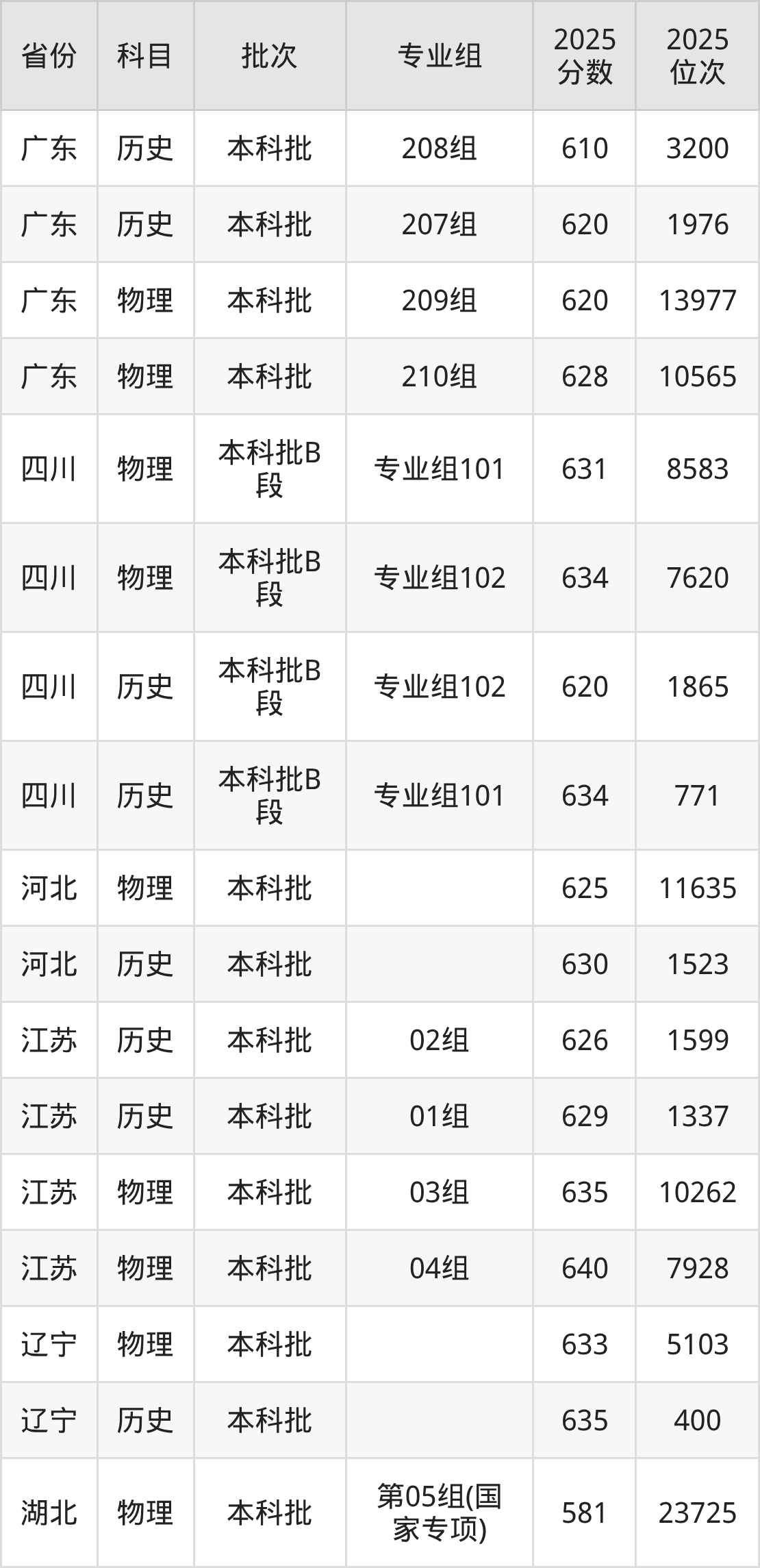 普通类本科物理类最低633分,本科历史类最低635分
