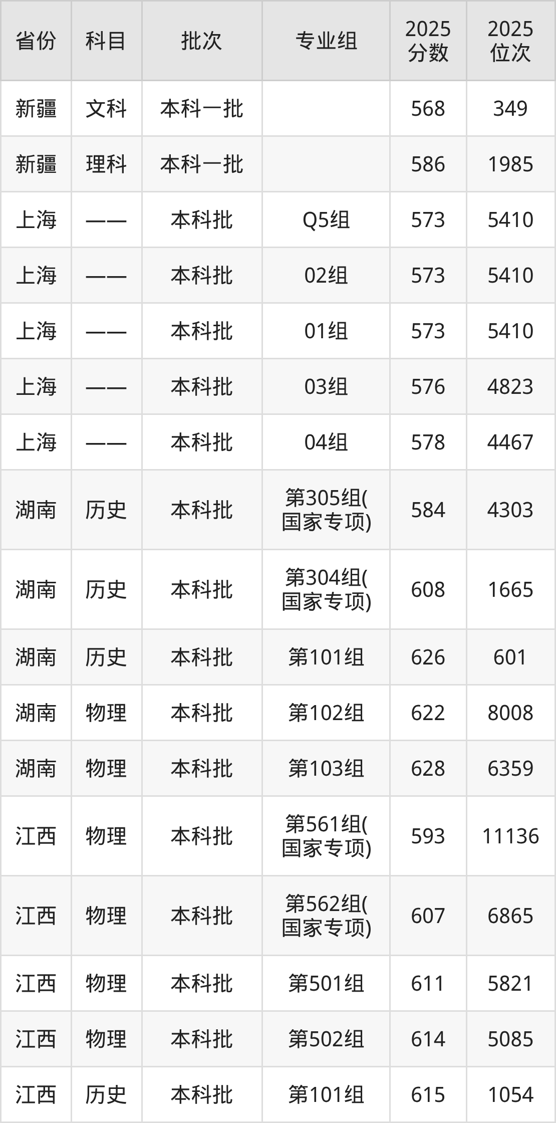上海财经大学第05组(国家专项计划):2025年投档录取最低分为581分,录取最低位次为23725名。