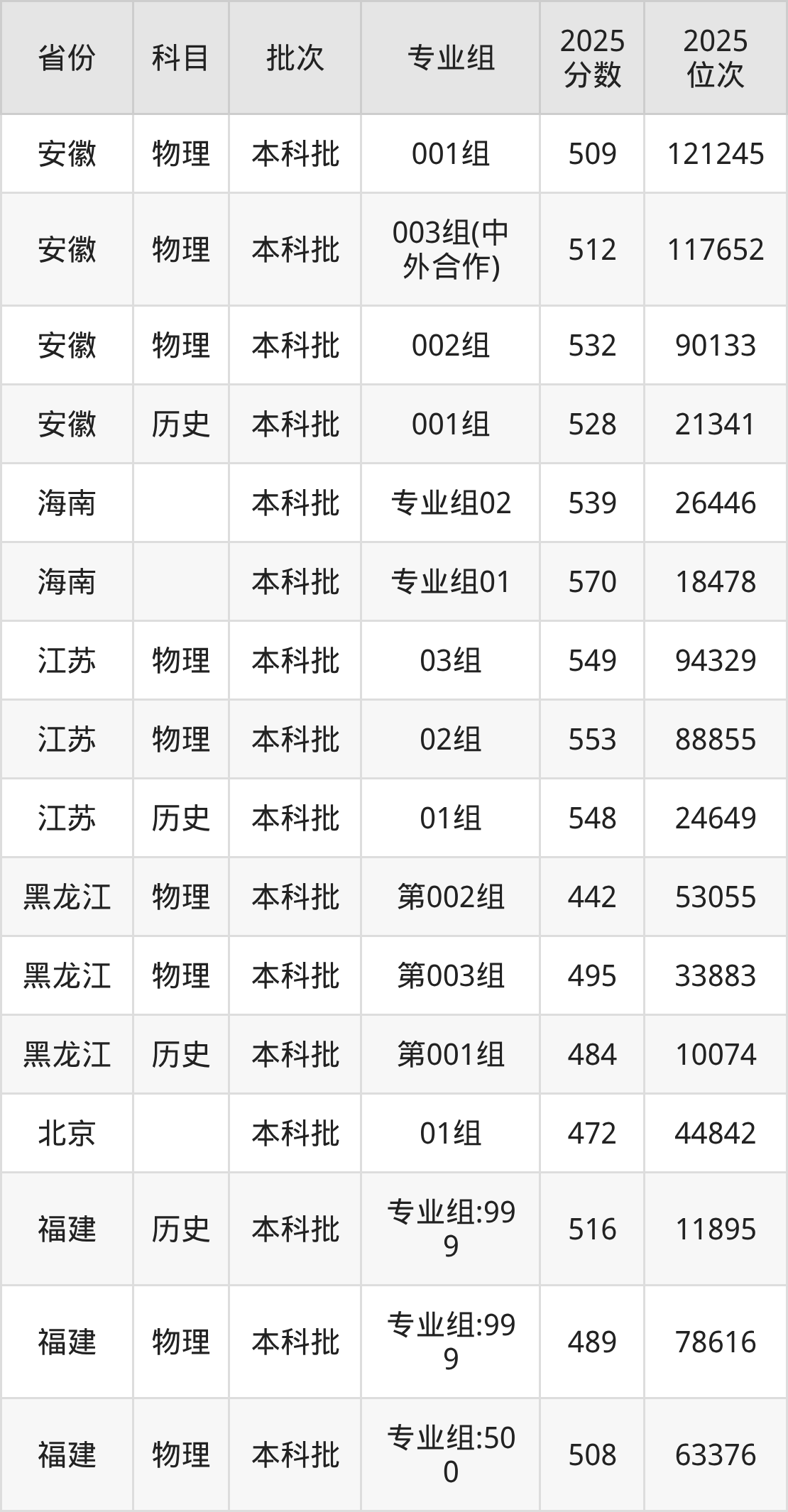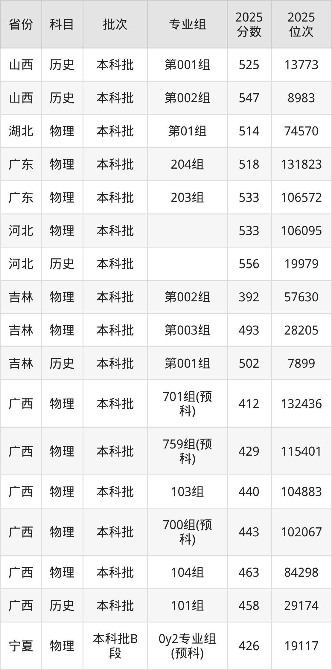 天津职业技术师范大学001组:2025年投档录取最低分为509分,录取最低位次为121245名。