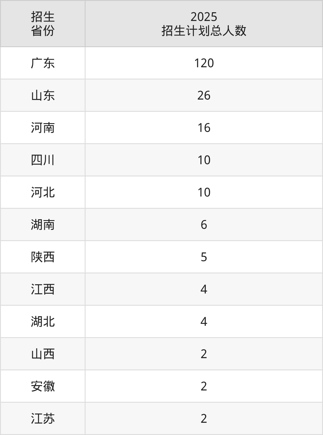 2025年深圳北理莫斯科大学面向全国12个省市开展本科招生;招生专业共4个,招生人数共207人。2025年在广东省招生计划总人数是120人,其中,深圳北理莫斯科大学在广东省招生人数最多的是电子与计算机工程。深圳北理莫斯科大学在各省具体招生人数情况如下表。