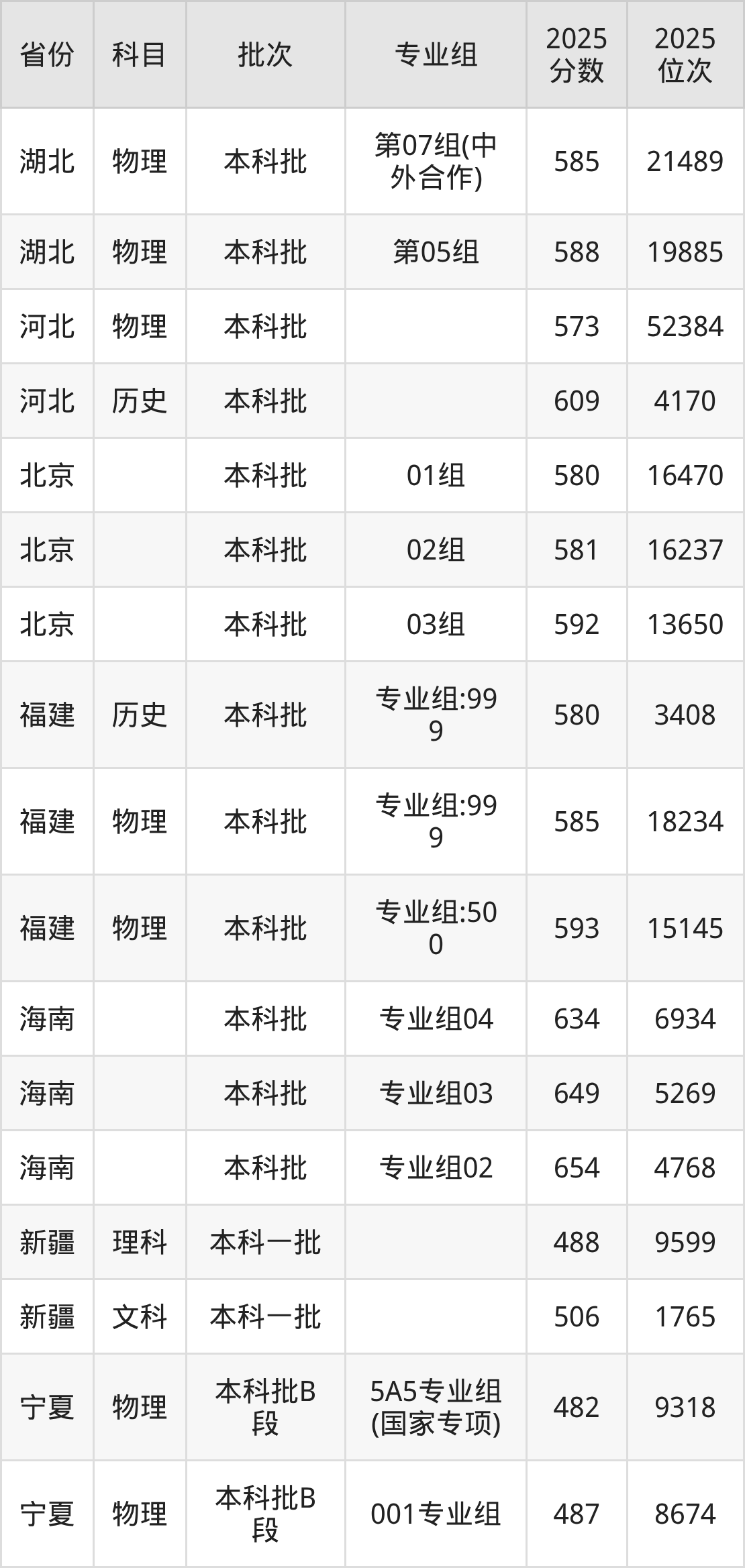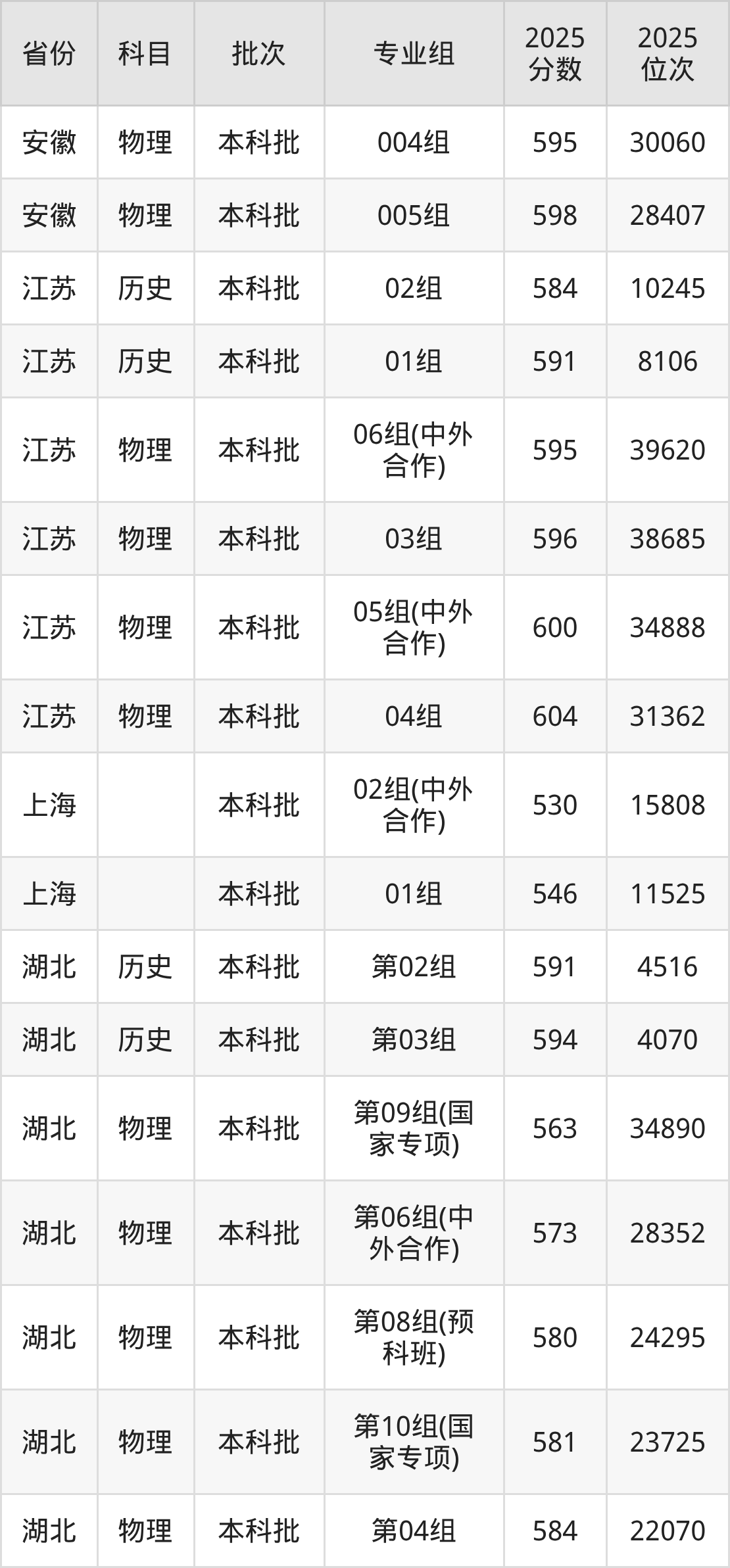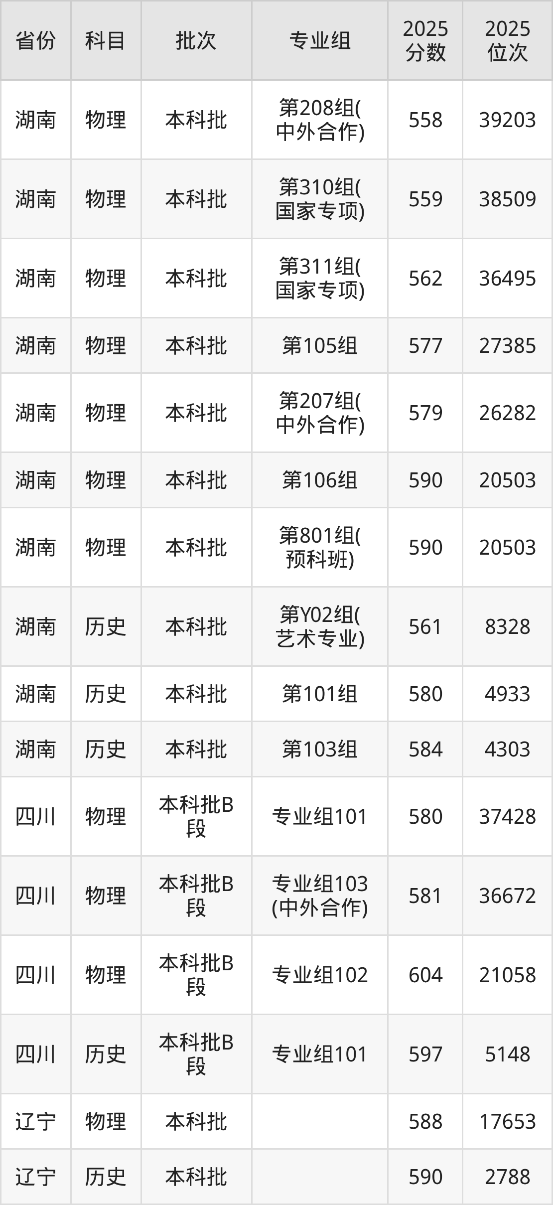 普通类本科物理类最低583分,本科历史类最低593分