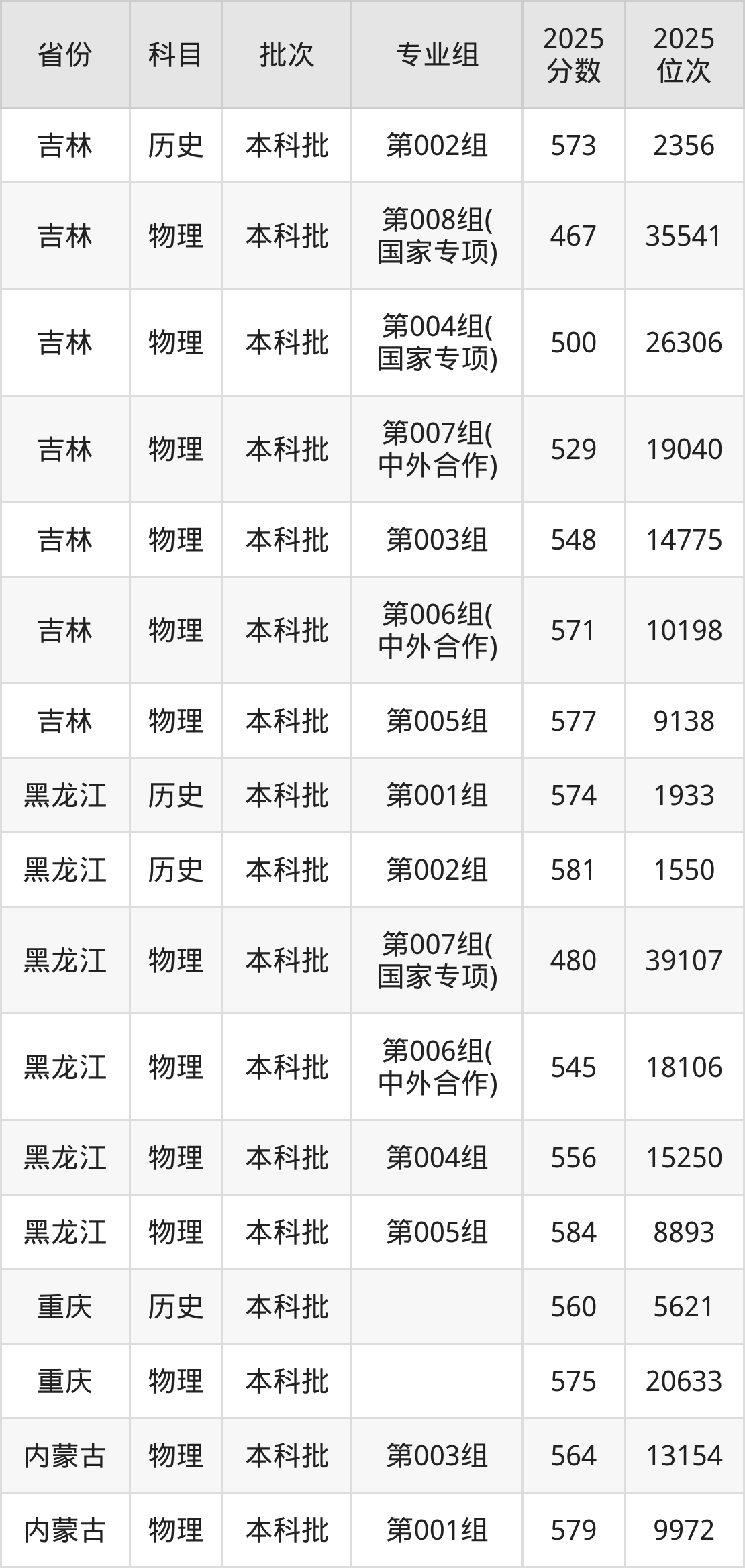 2025年长安大学全国录取分数线是467分到654分,录取最低在吉林物理类(第008组(国家专项))、录取最高在海南(专业组02)。各省各专业组最低分具有差异,详情如下: