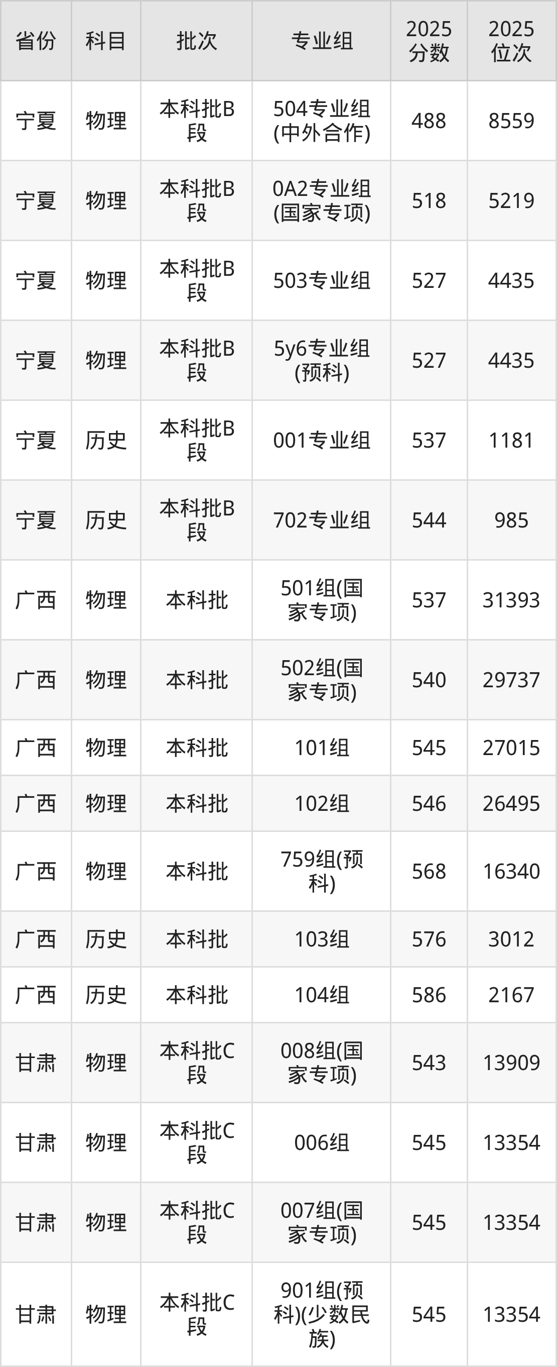 普通类本科物理类最低554分,本科历史类最低587分