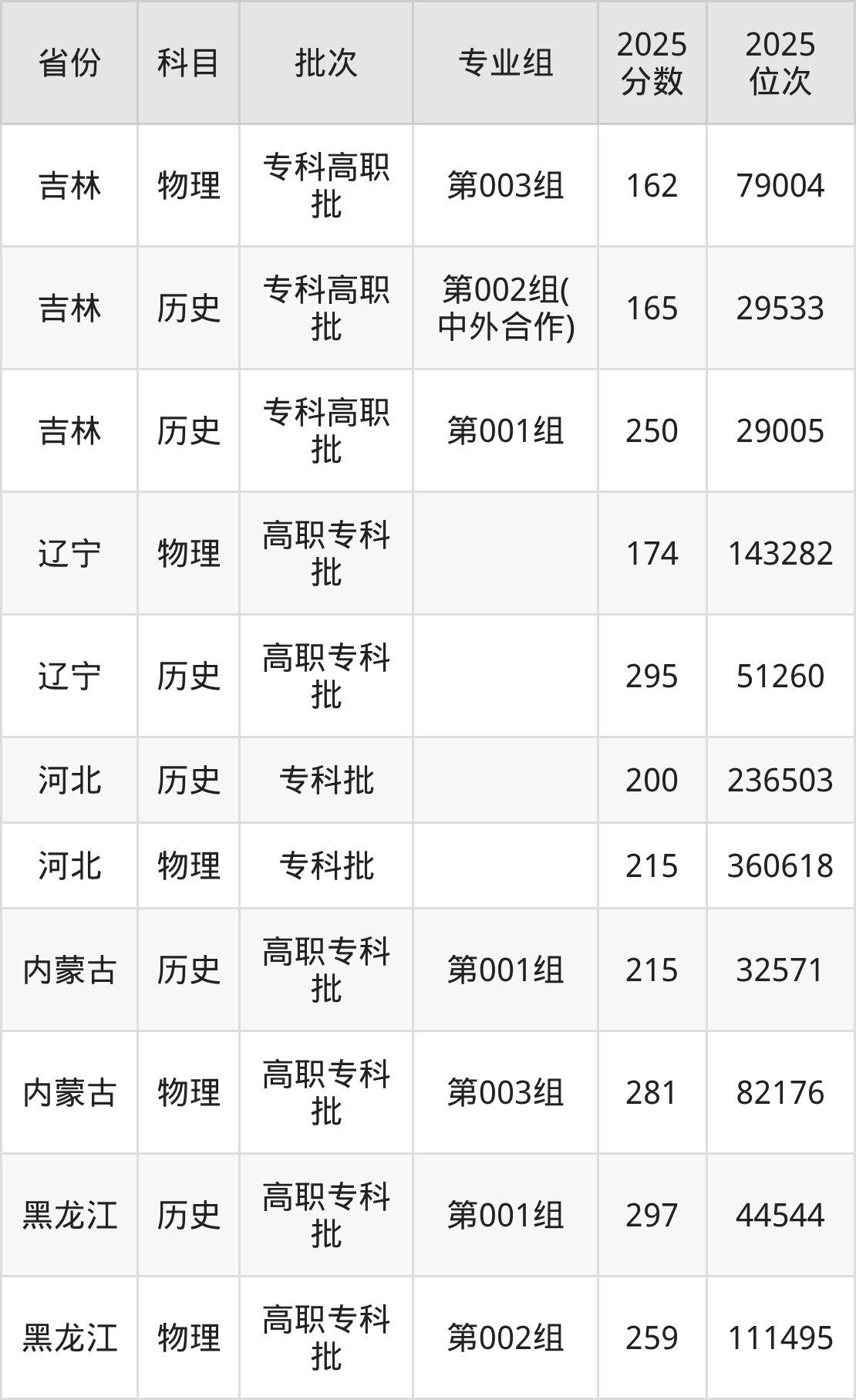 下面是2025年吉林科技职业技术学院全国录取分数线一览表,请查阅。