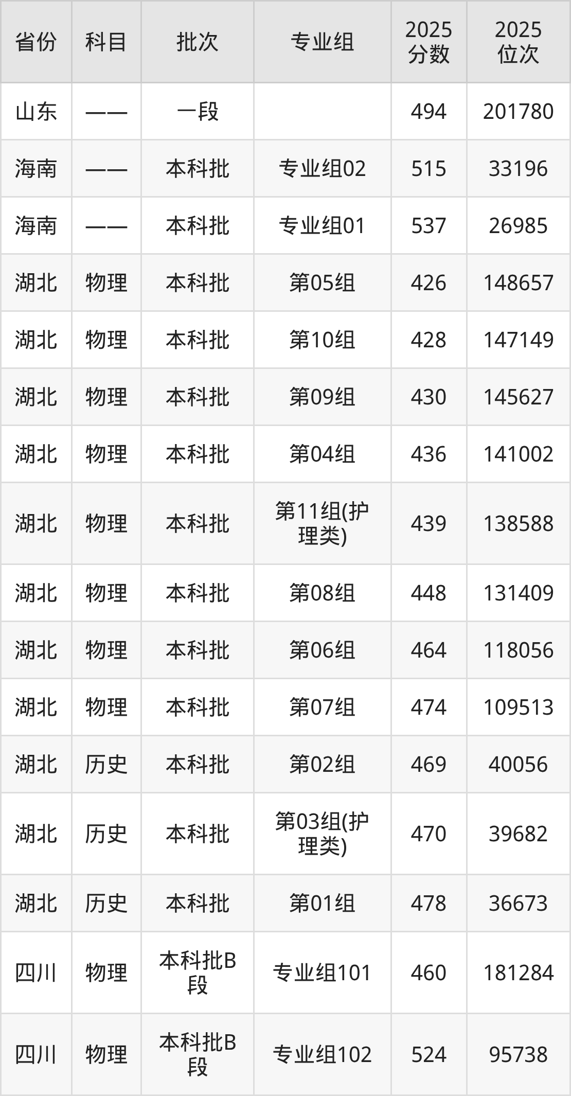 湖北恩施学院第001组:2025年投档录取最低分为478分,录取最低位次为26525名。