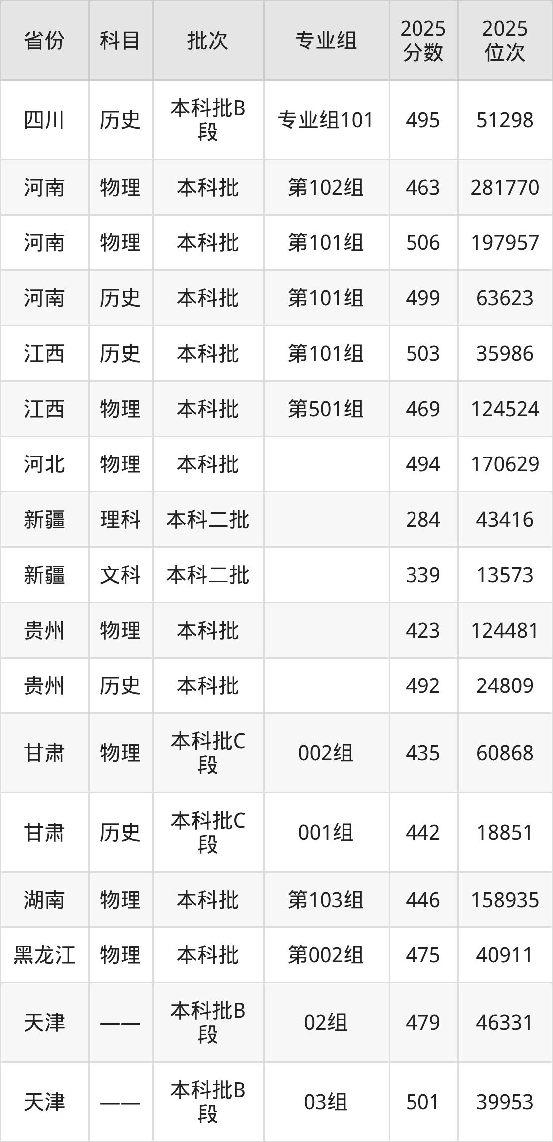 2025年投档录取最低分为492分,录取最低位次为24809名。