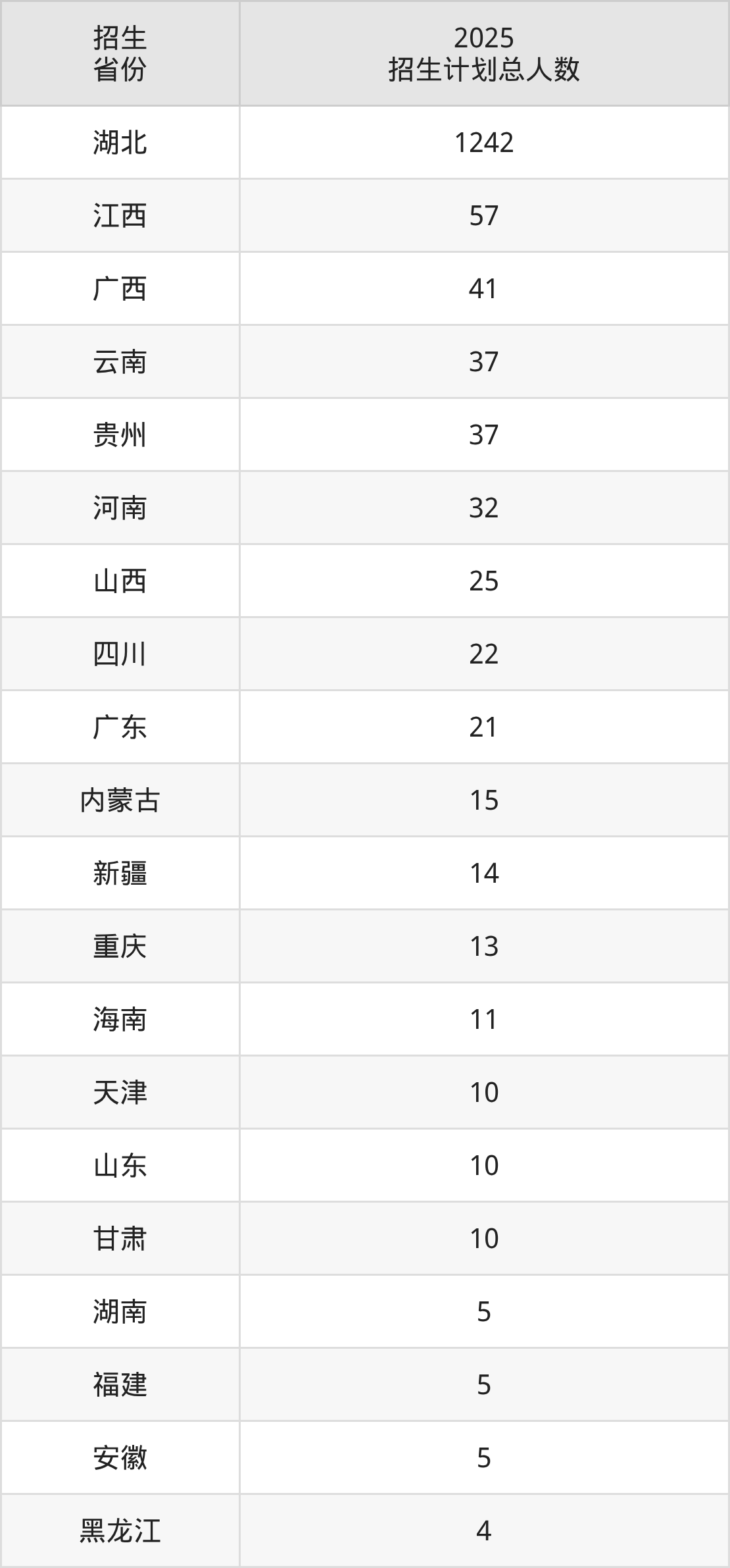 2025年湖北恩施学院面向全国22个省市开展本科招生;招生专业共26个,招生人数共1621人。2025年在湖北省招生计划总人数是1242人,其中,湖北恩施学院在湖北省招生人数最多的是汉语言文学。湖北恩施学院在各省具体招生人数情况如下表。