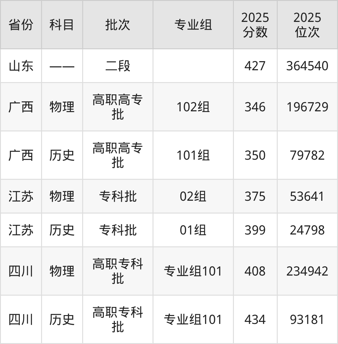 陕西交通职业技术学院第001组:2025年投档录取最低分为399分,录取最低位次为20026名。